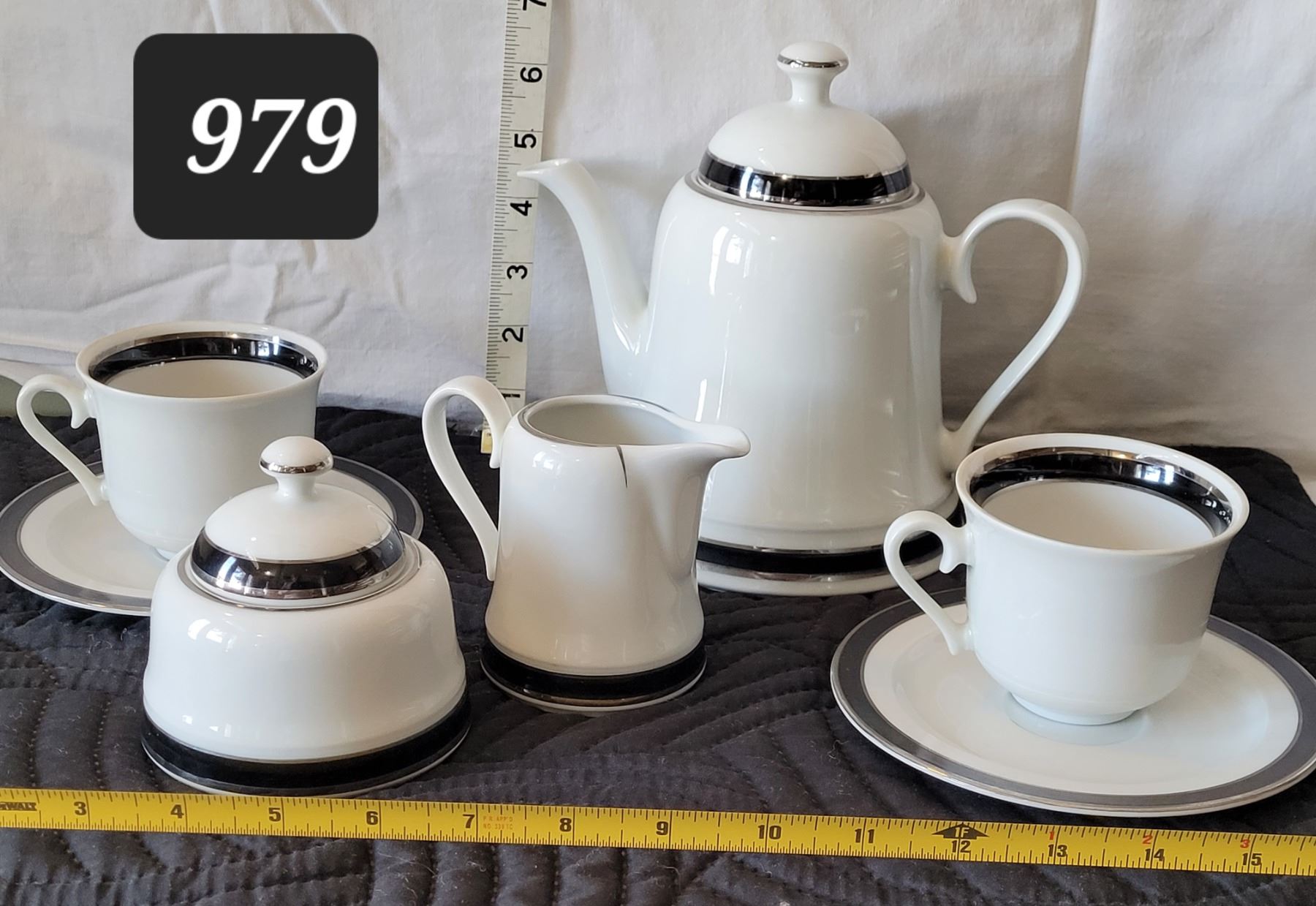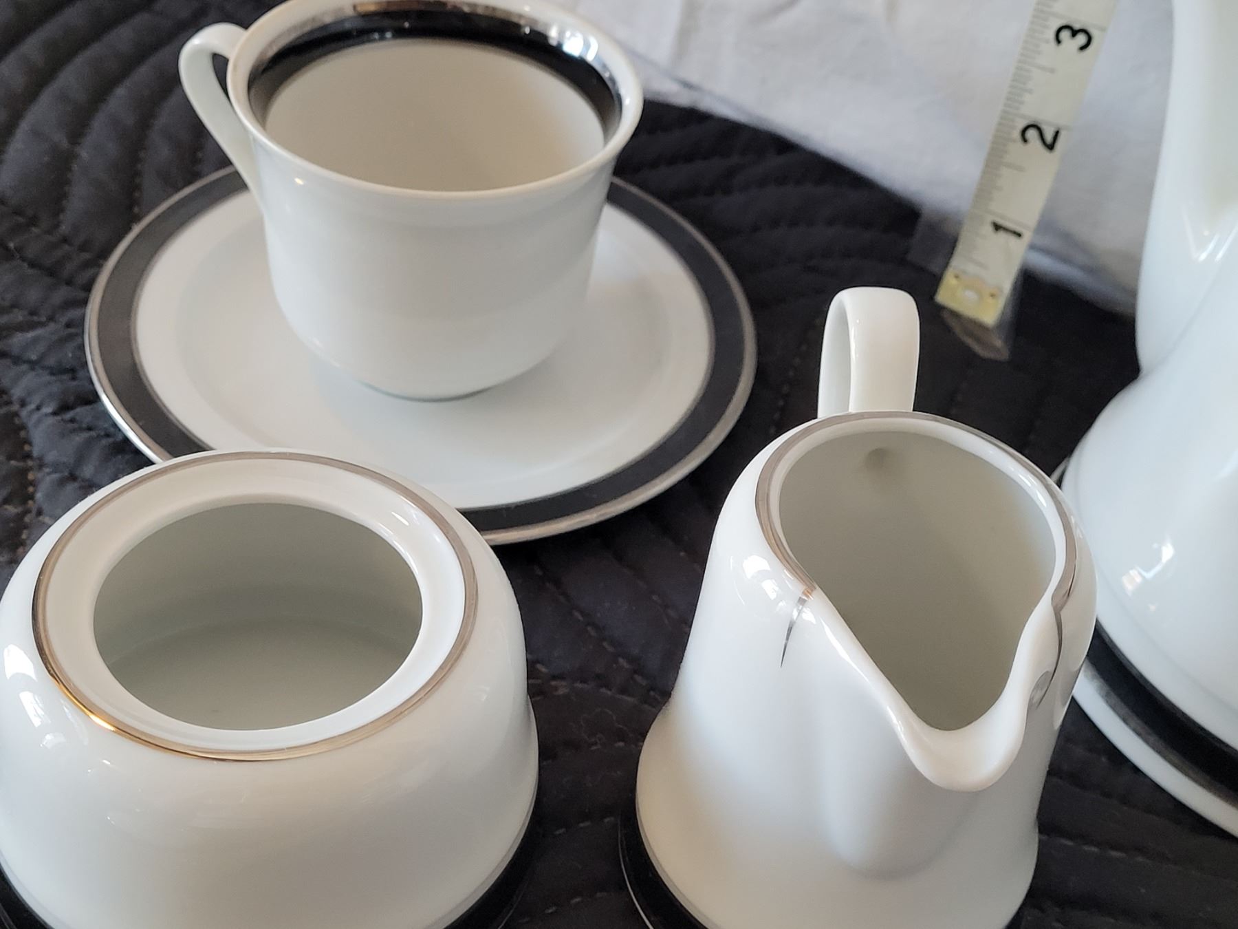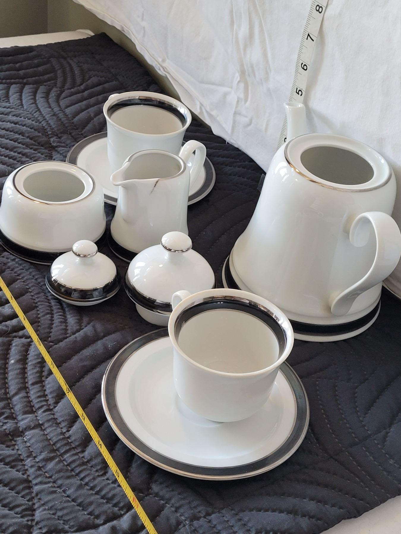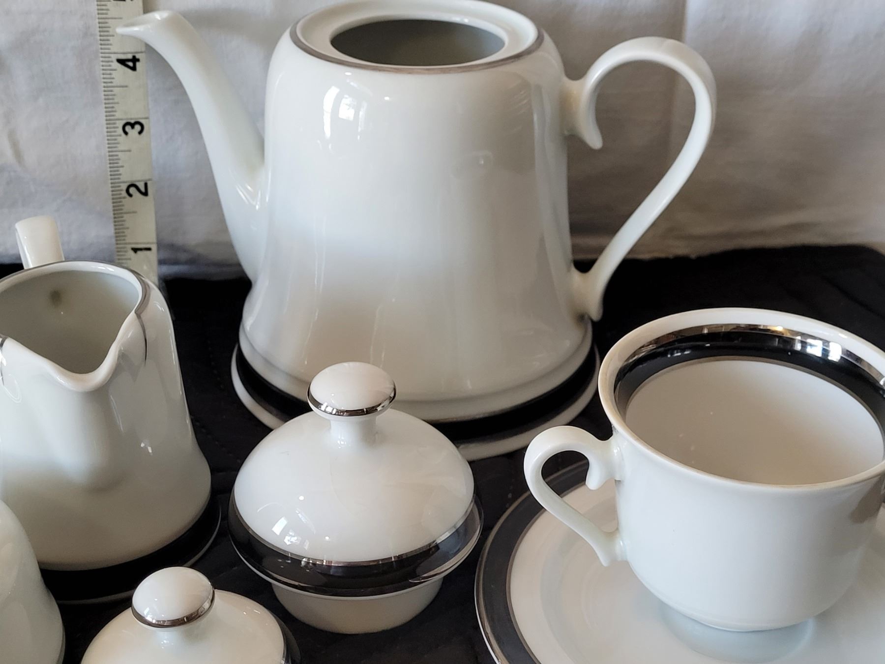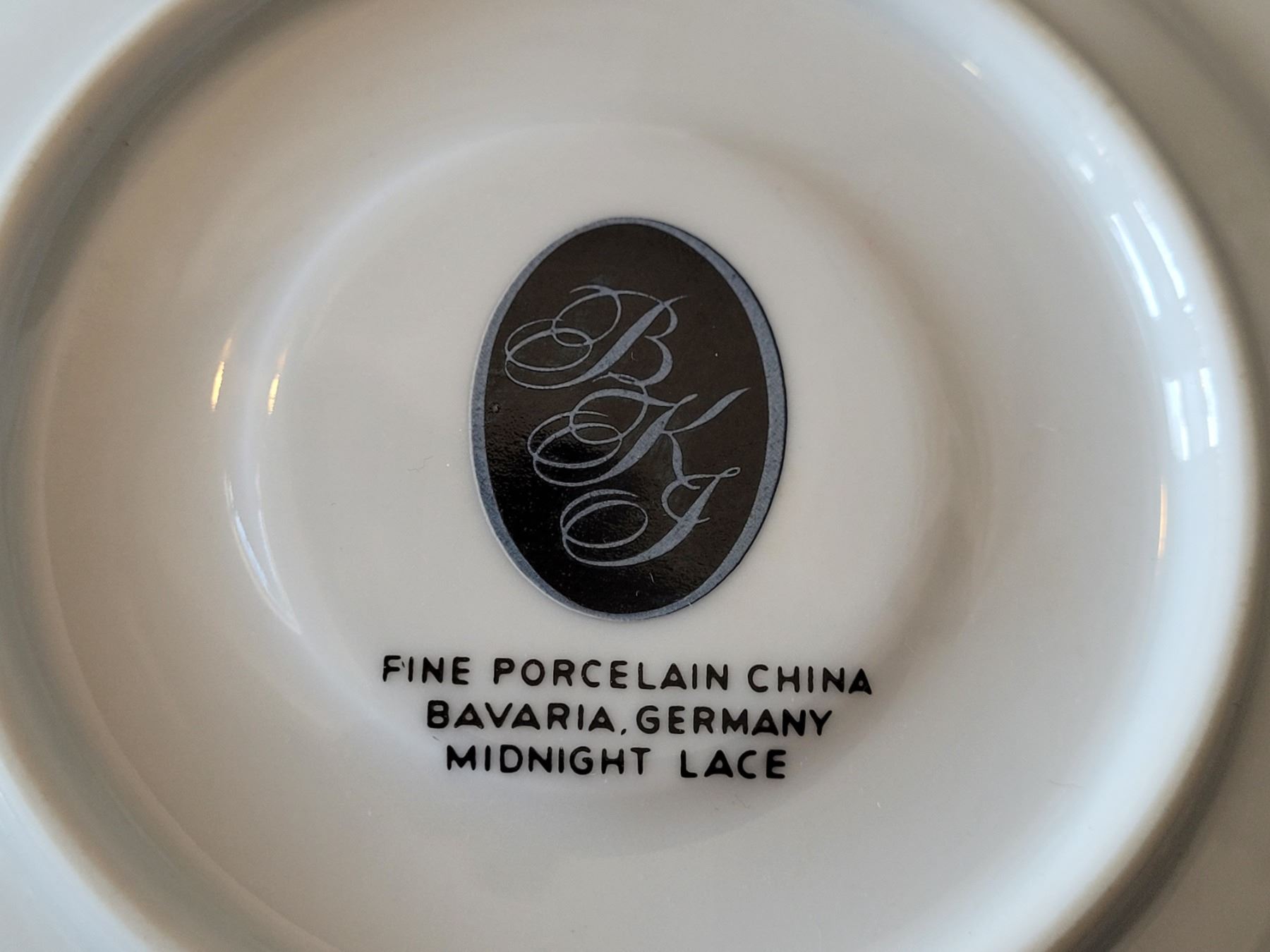 1980's Belkraft German fine China Tea set. “Midnight Lace” Platinum trim, excellent condition.