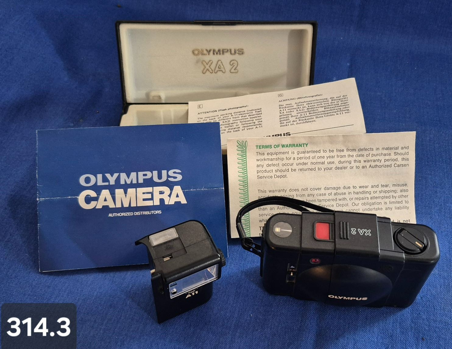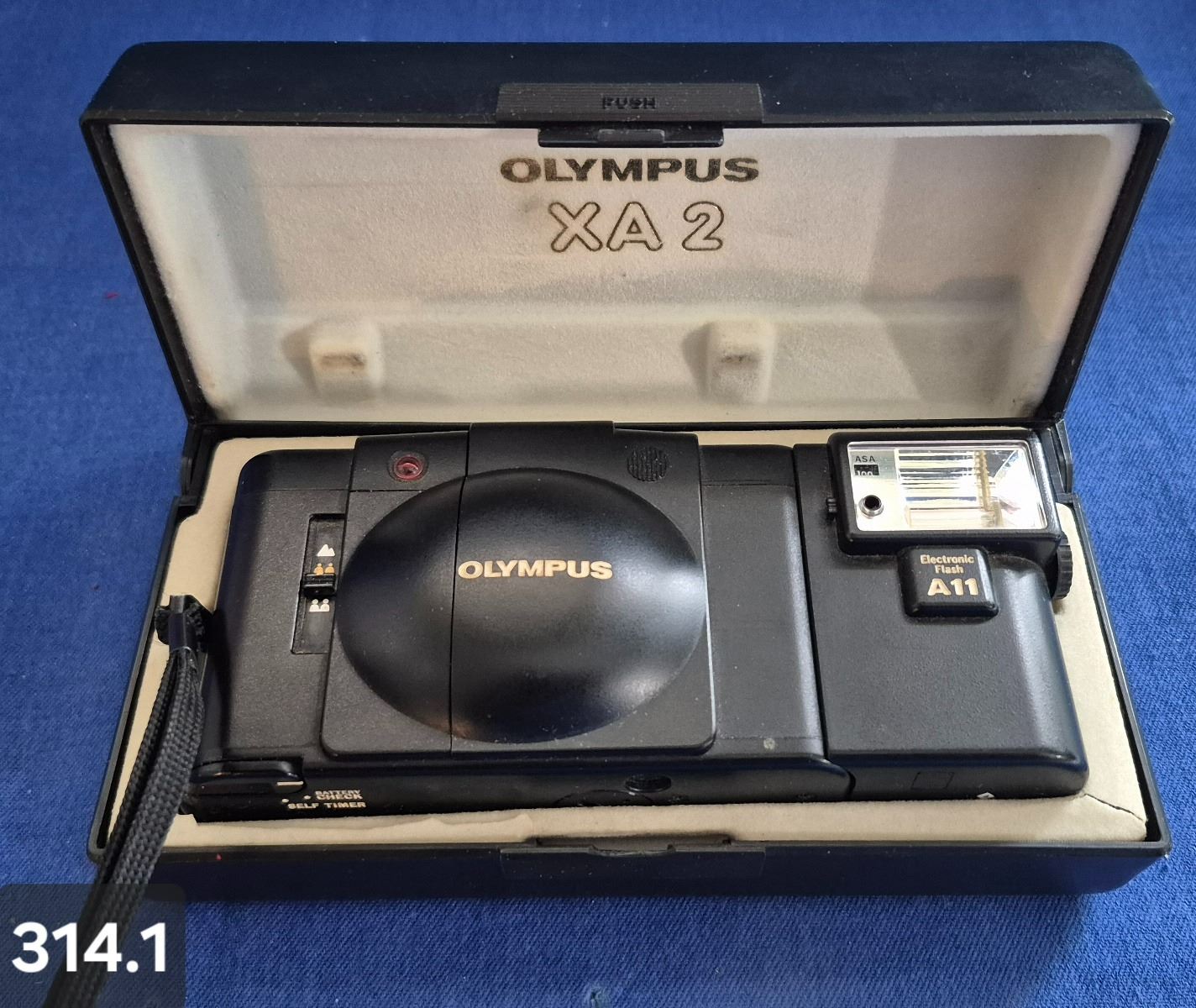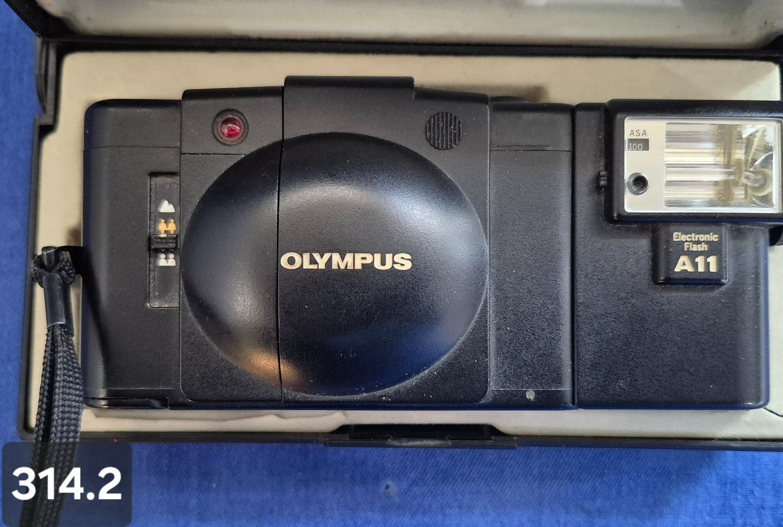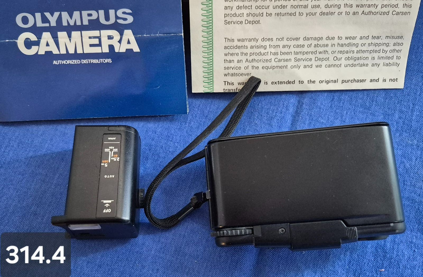 1980s Olympus Compact 35 mm Camera w/flash and original case