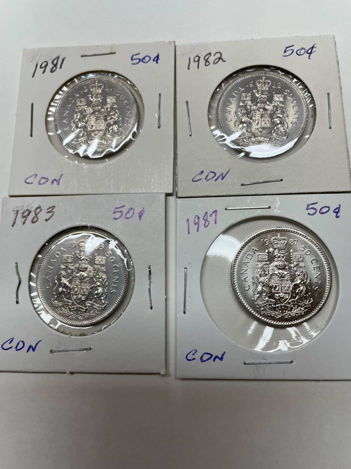 1981, 1982, 1983, 1987 Canada $.50 Fifty Cents Bank/Mint Roll