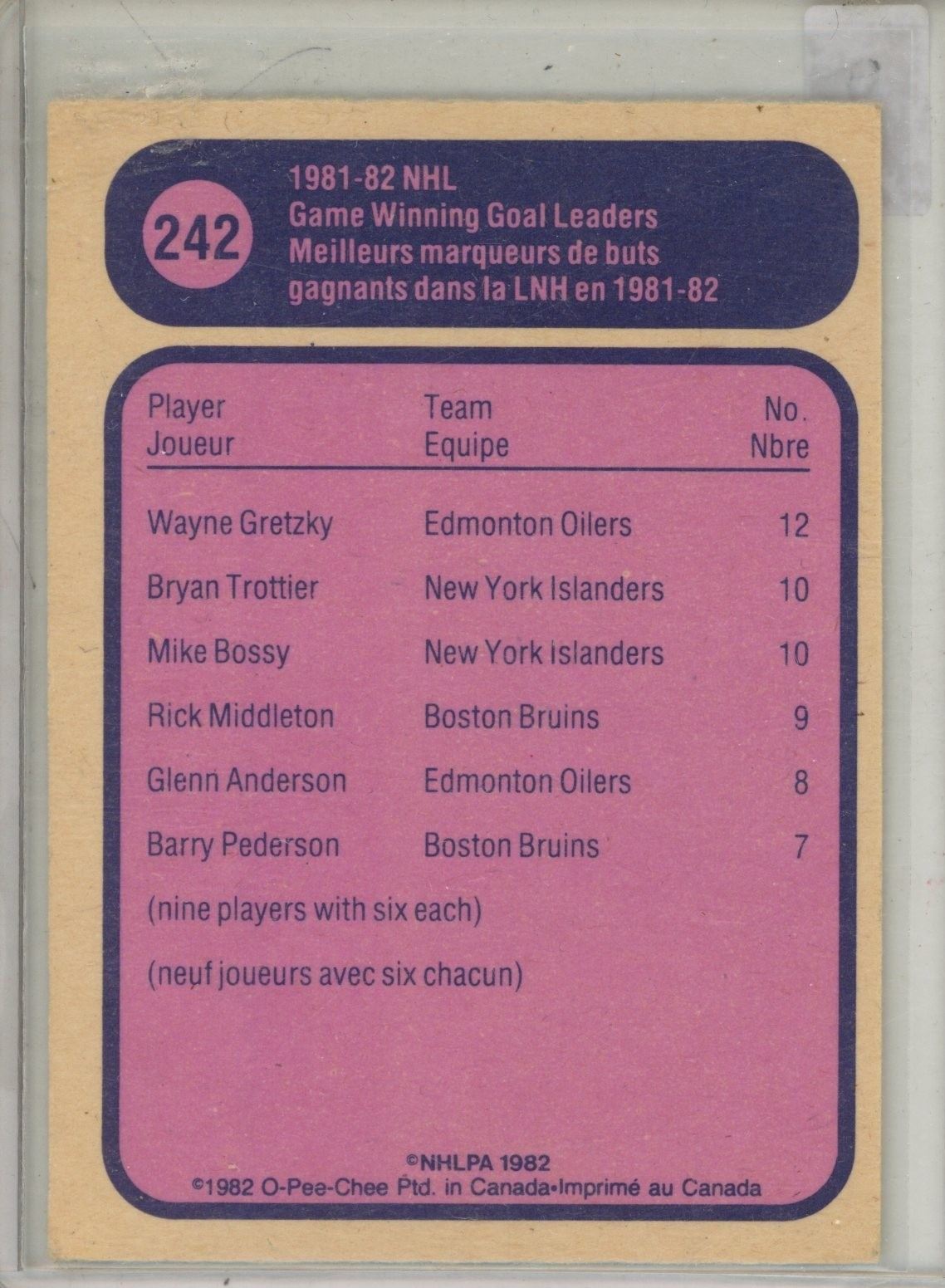 1981-1982 Gretzky Game Winning Goal Leader.