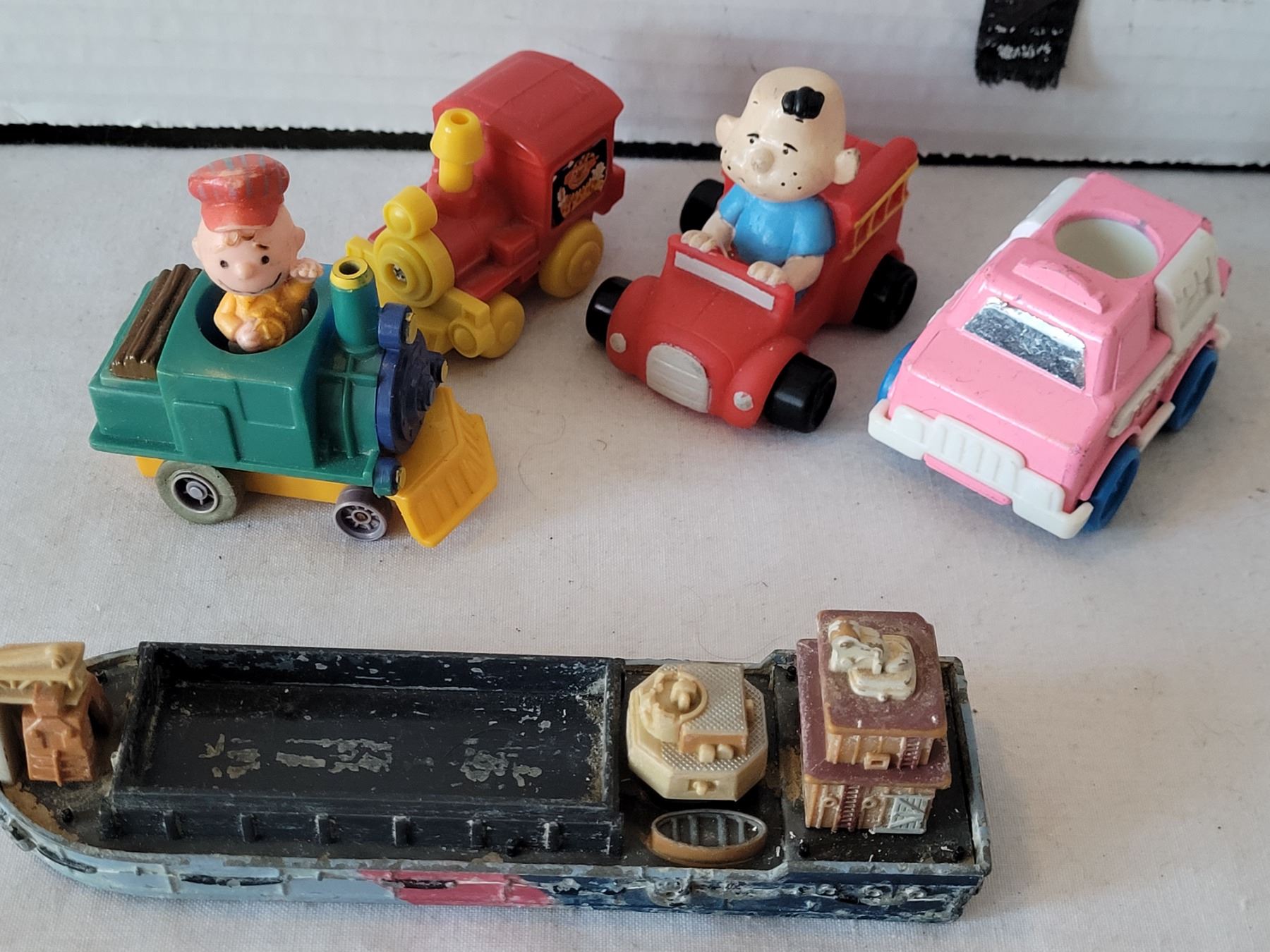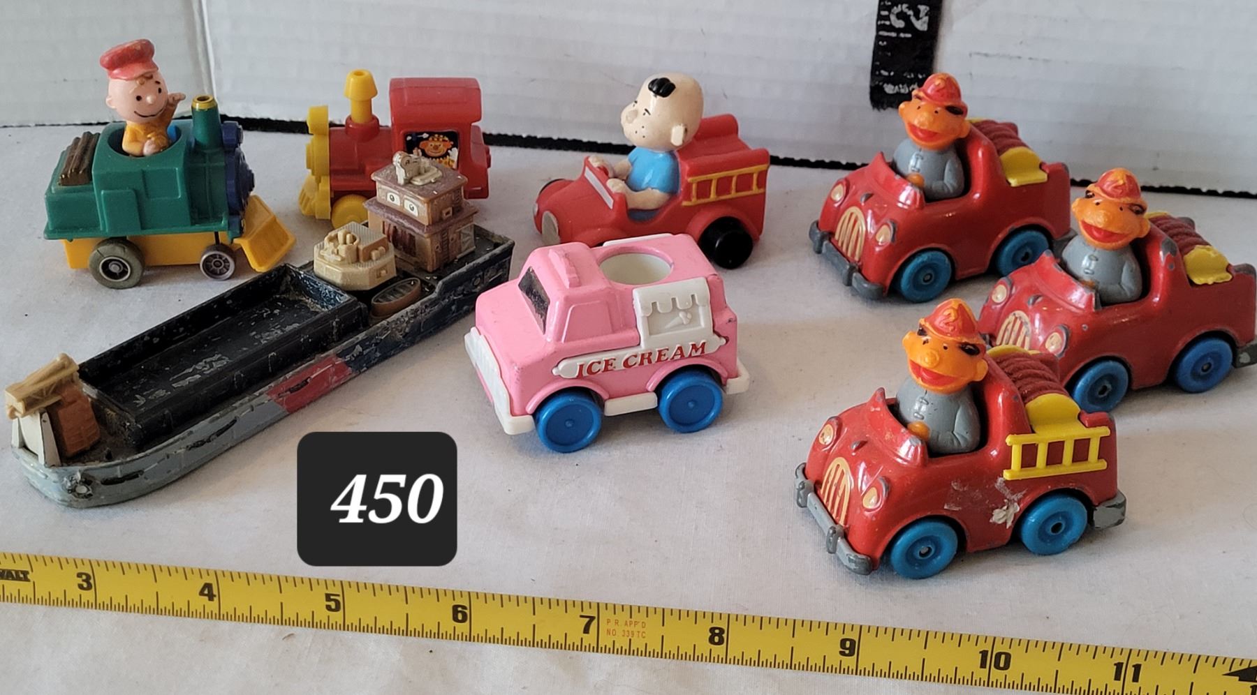 1981 Hasbro, Muppet Ernie in diecast fire truck (3). Ertl tugboat Hong Kong, & more.