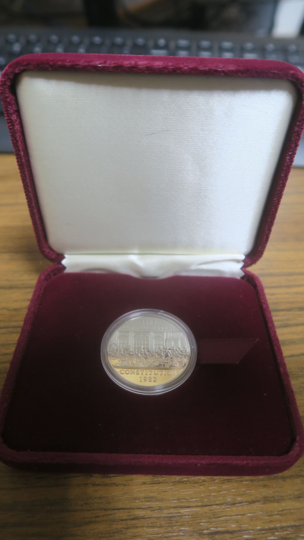 1982 Constitution Dollar. Specimen. Housed in its original case & box of issue.