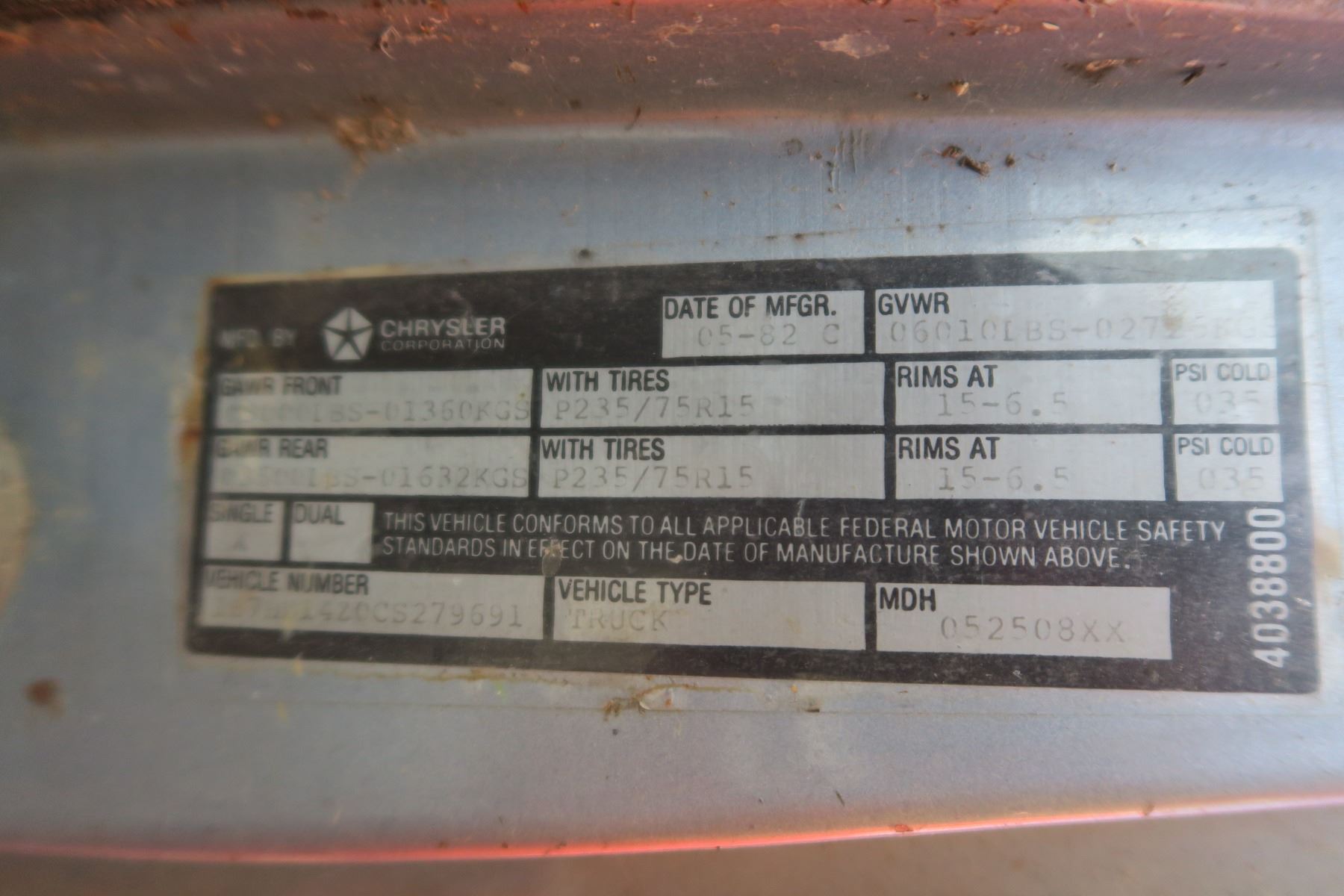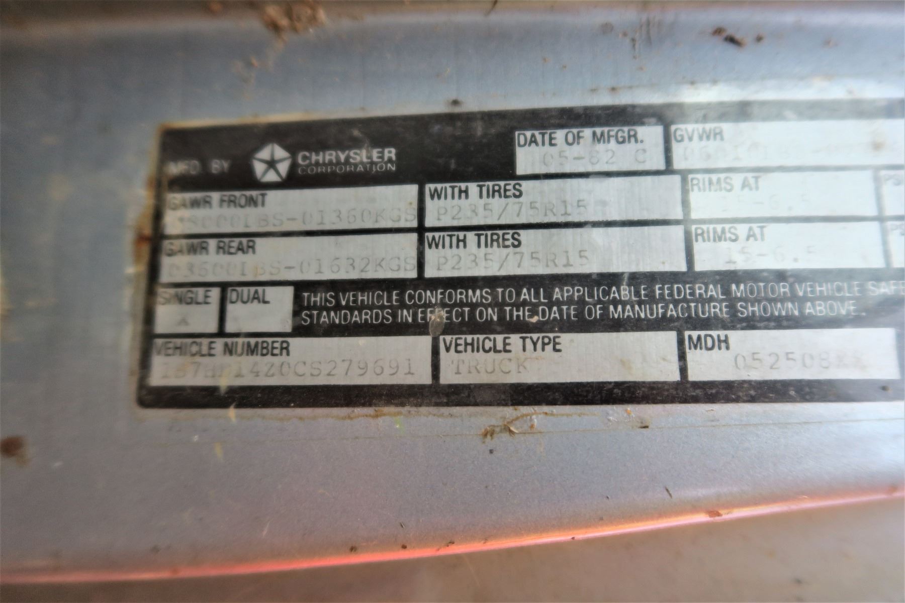 1982 Dodge Ram 150 Custom Propane 1B7HD14Z0CS279691 (No Keys) Sold As Is - ODO: 73862 - SGI Online VIN Lookup: https://www.sgi.sk.ca/vin