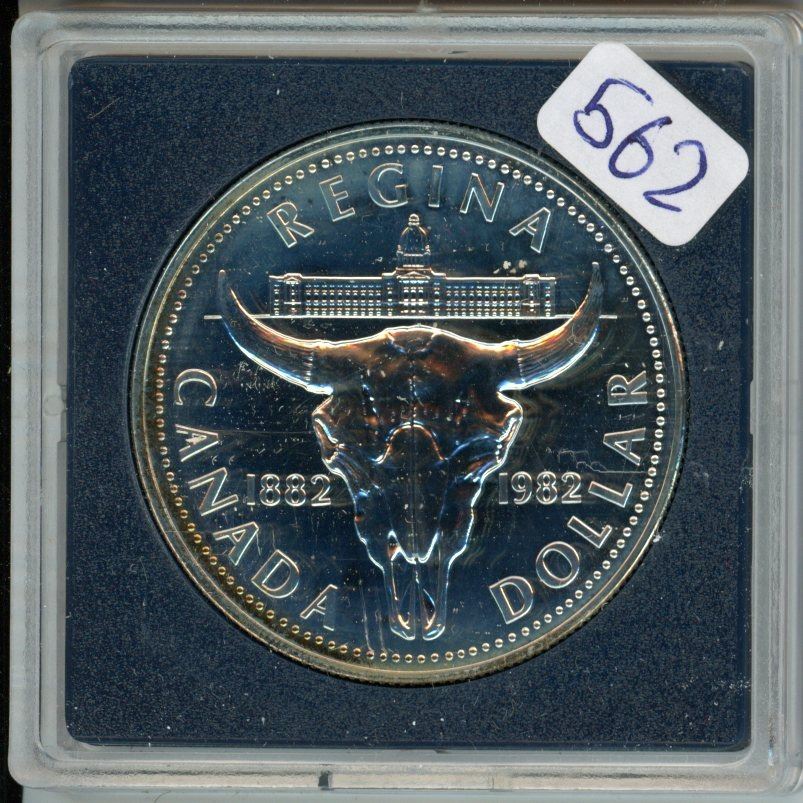 1982 Regina Centennial Silver Dollar. Popular bison skull. Specimen.