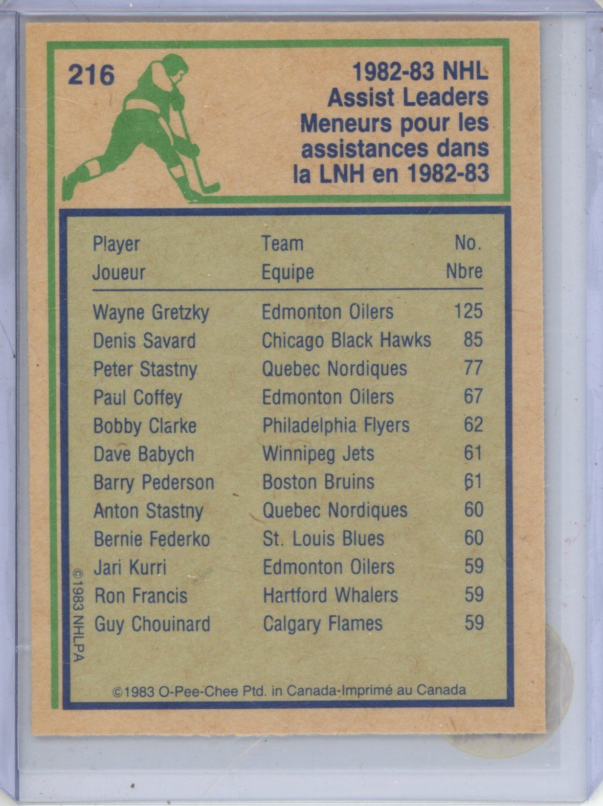 1983-84 O-Pee-Chee Wayne Gretzky - Assist Leader #216.
