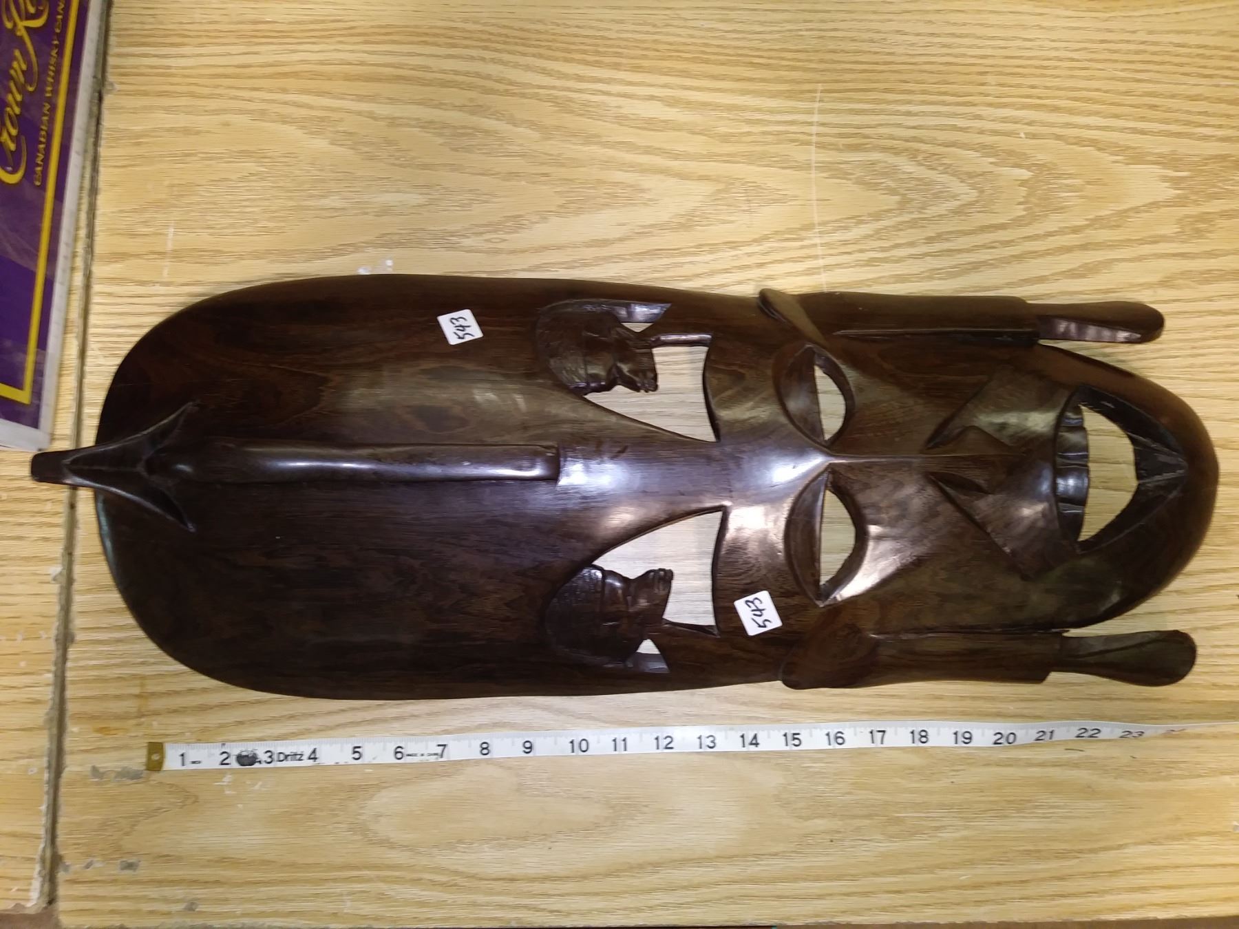 1983 Kenya ebony wood carved mask 24" X 3/8" thick