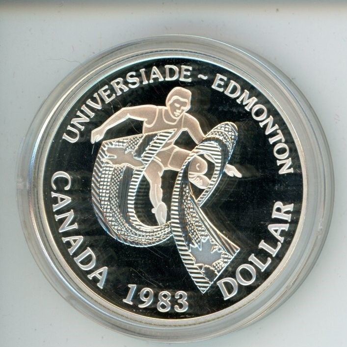 1983 World University Games Proof Silver Dollar. Housed in its original hard plastic holder.