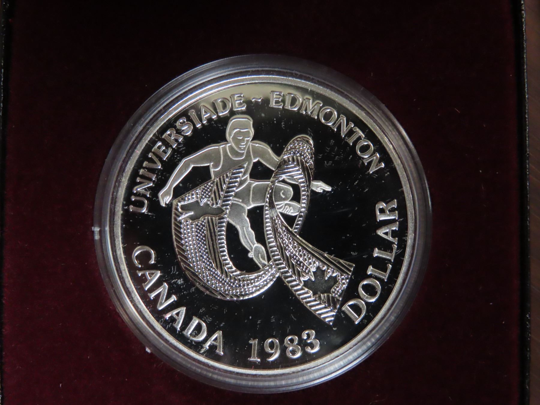 1983 World University Games Proof Silver Dollar. Proof with Ultra Heavy Cameo. Bright White. Housed in its original black case of issue.