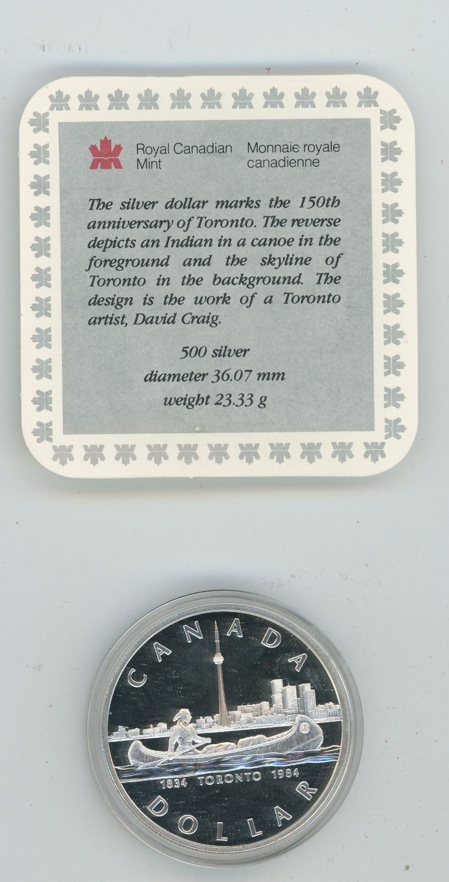 1984 $1.00 PROOF SILVER TRONTO 150TH ANNIVERSARY