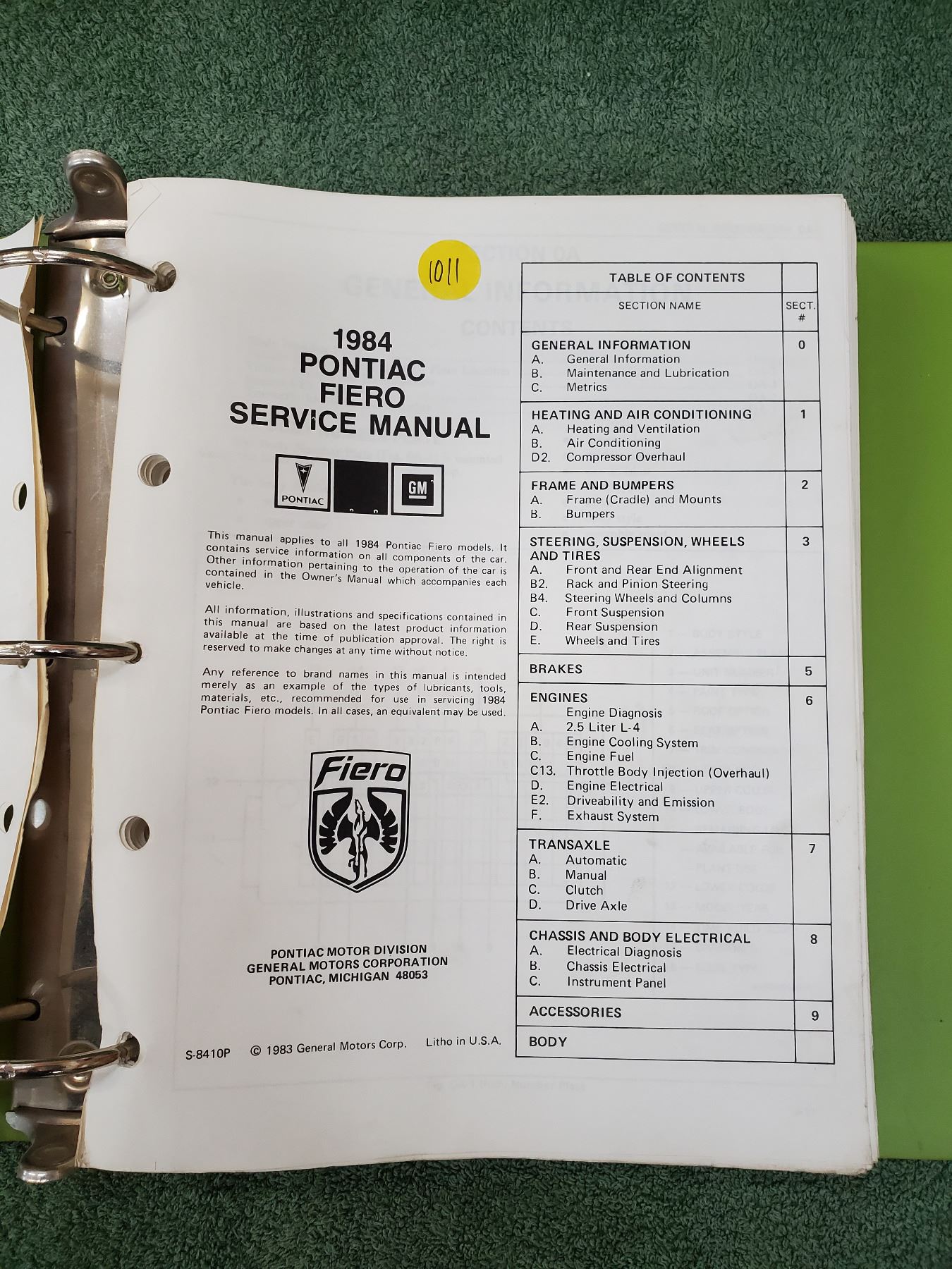 1984 Pontiac Fiero Loose Leaf Service Manual