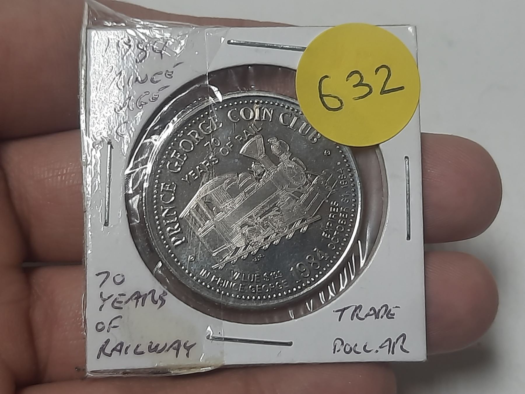 1984 Prince George BC Trade Dollar. 70th Anniversary of Rail. Unc.