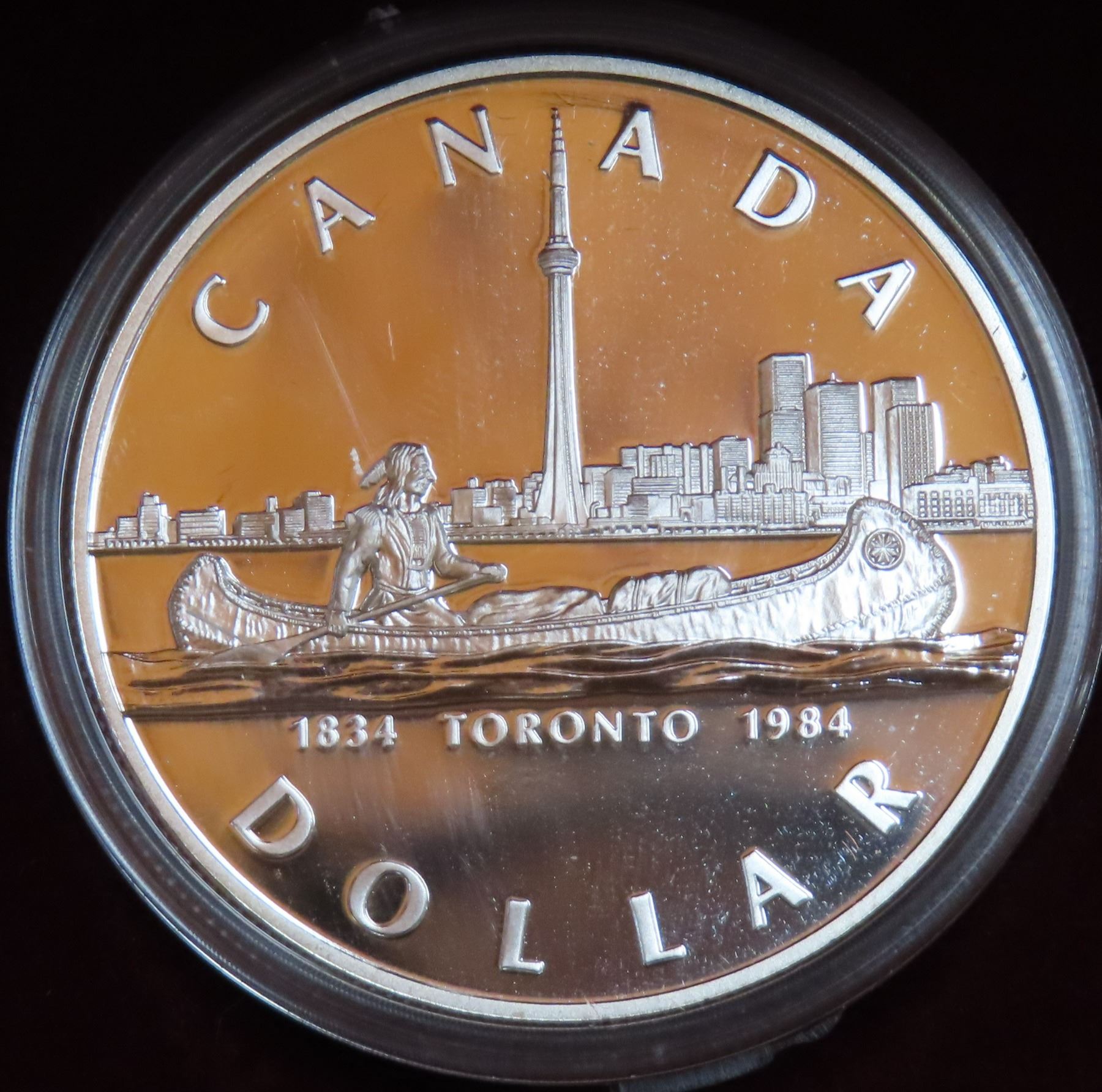 1984 Toronto Silver Dollar. Proof with Ultra Heavy Cameo. Bright White. Housed in its original case of issue.
