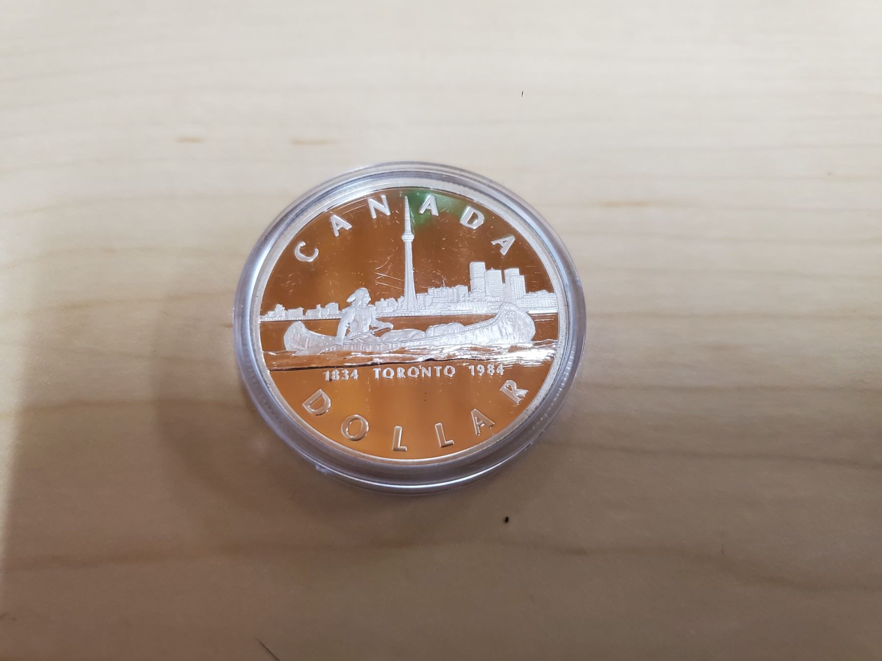 1984 Toronto Silver Dollar. Proof with Ultra Heavy Cameo. Housed in its original hard plastic holder.