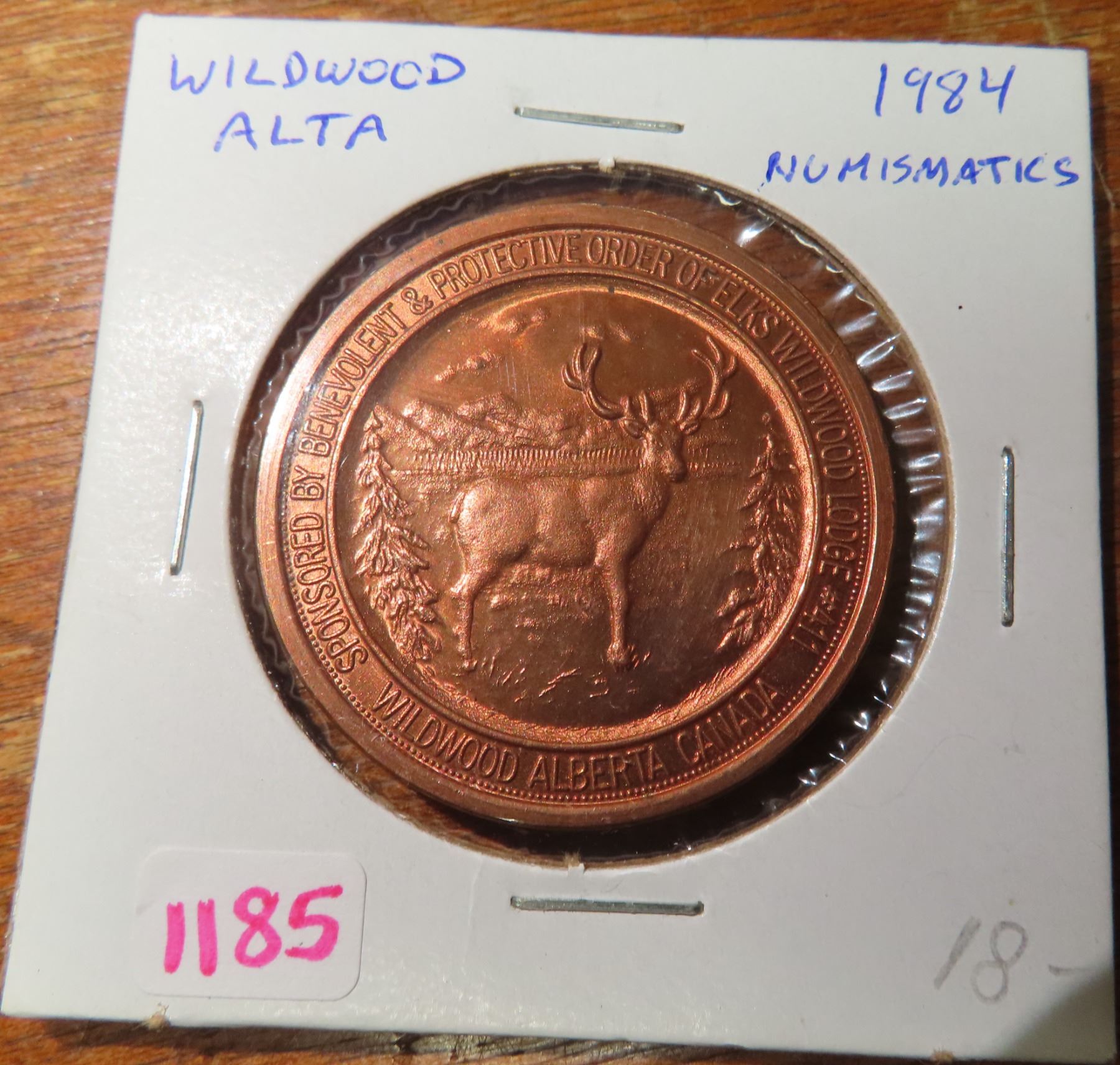 1984 Wildwood, Alberta Trade Dollar. Issued by Elks Lodge #411. Bronze. Large 38mm medal. BU.