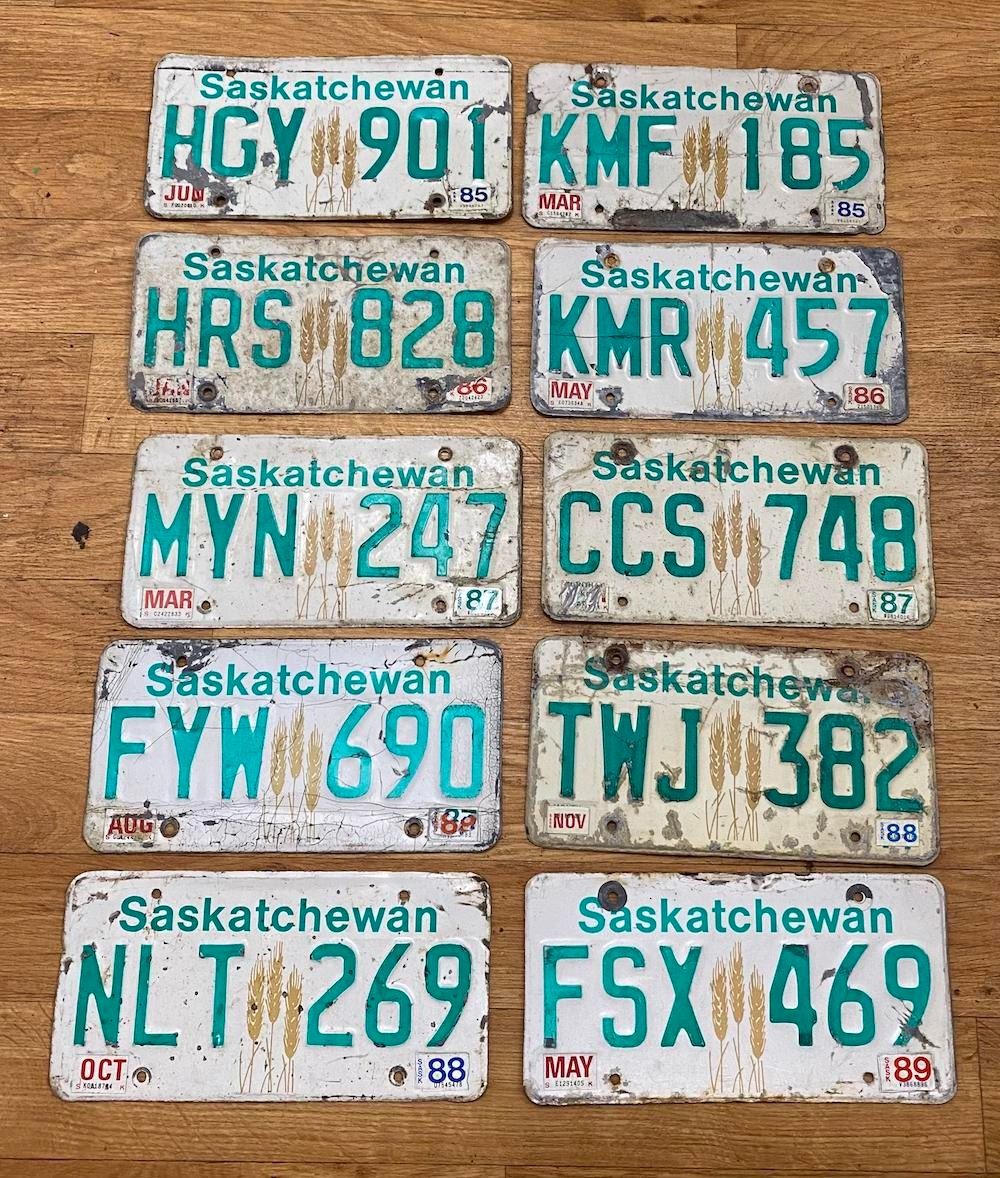 1985, 1986, 1987, 1988, 1989 Saskatchewan License Plates x 10