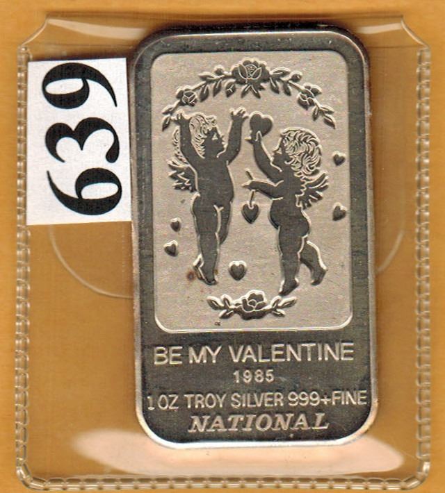 1985 BE MY VALENTINE - .999 FINE 1 TROY OUNCE - SILVER BAR