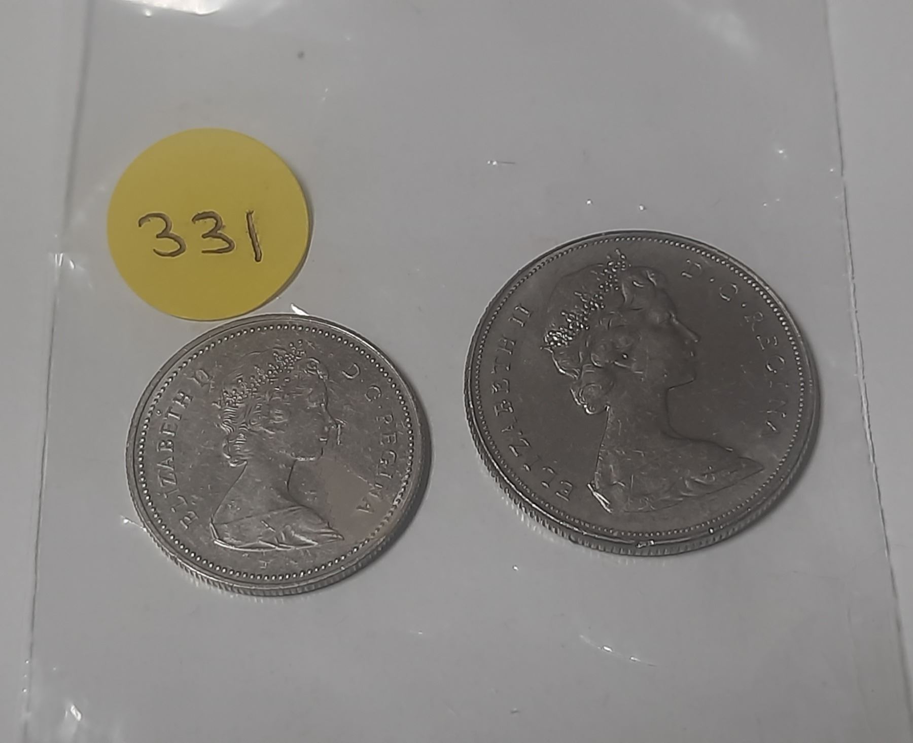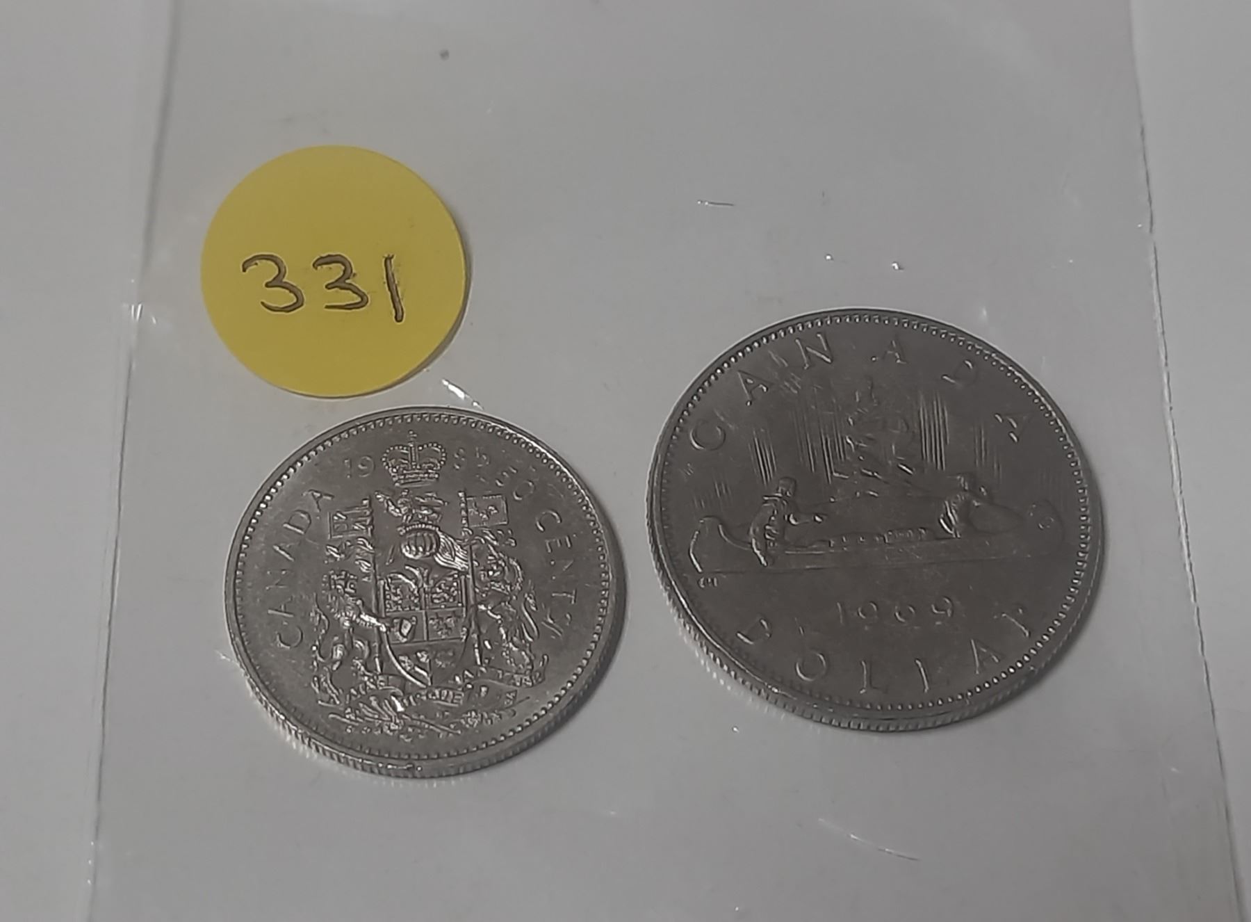 1985 Canada 50 Cents and 1969 Canadian 1 Dollar Coins.