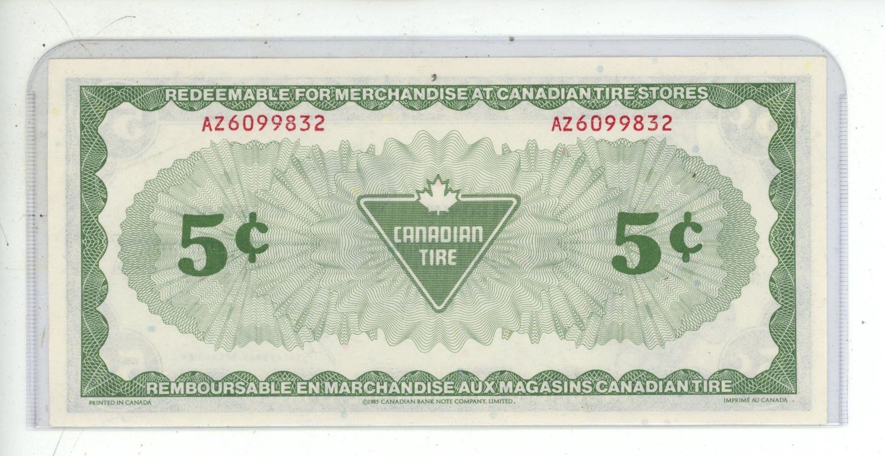 1985 Canadian Tire Five Cent Note UNC