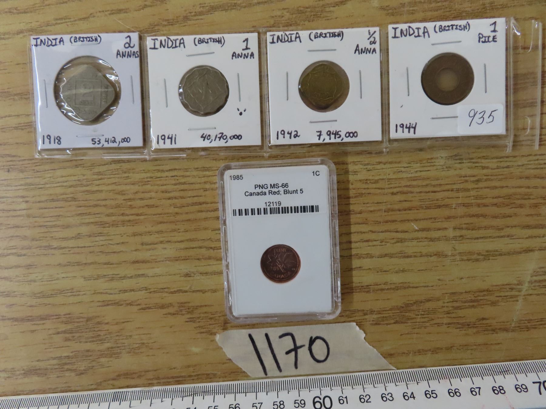 1985 PNG ms-66 canada red -blunt 5 penny and lot of 4 indian old coins