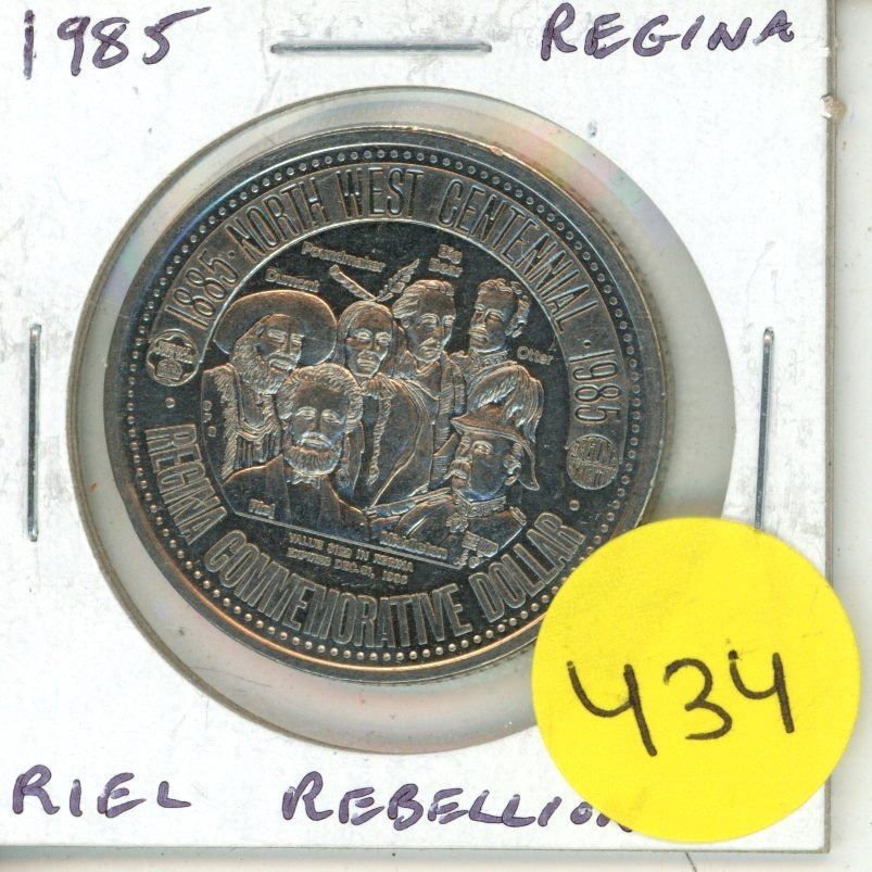 1985 Regina Trade Dollar. Commemorates the 1885 Riel Rebellion.