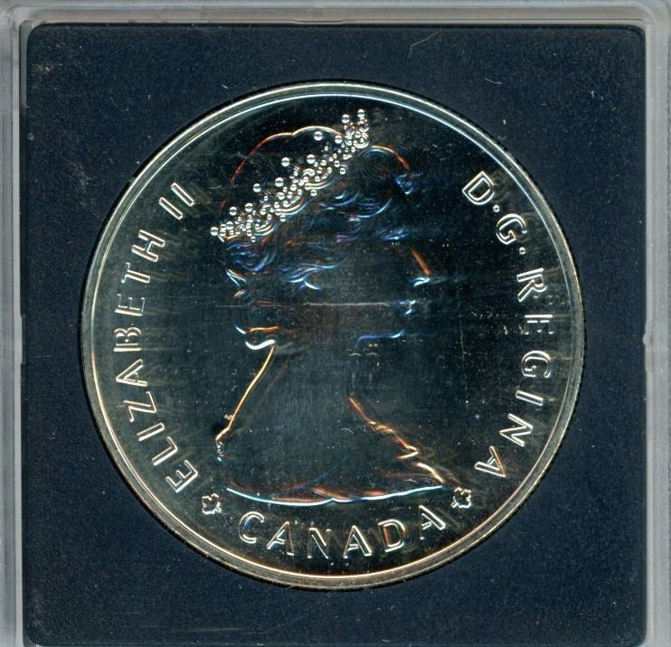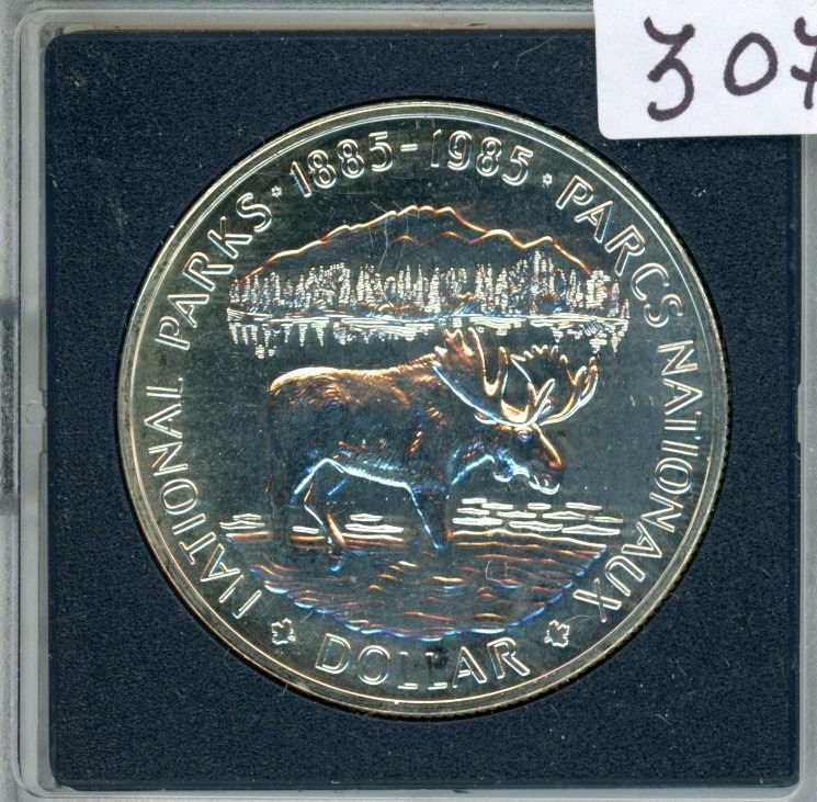 1985 Silver Dollar. 100th Anniversary of the National Parks of Canada. Popular moose. Specimen-66. Bright White.