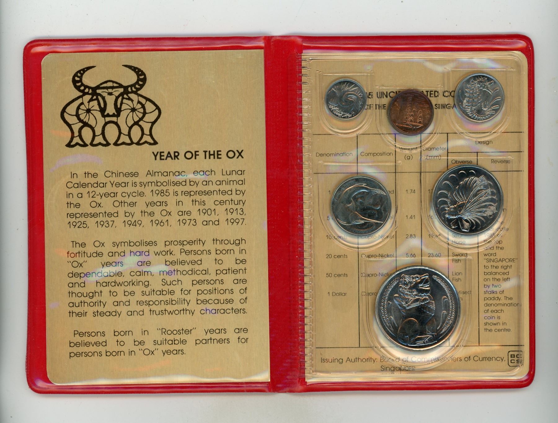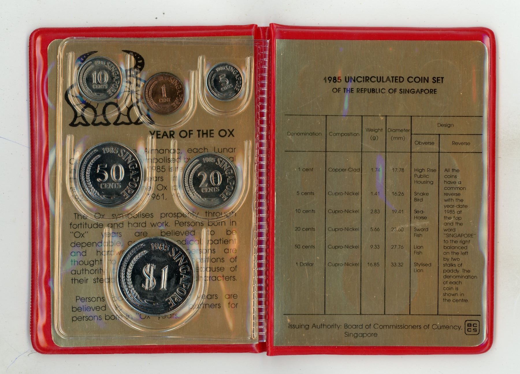 1985 Singapore Uncirculated Set.6-coin set housed in its original folder.