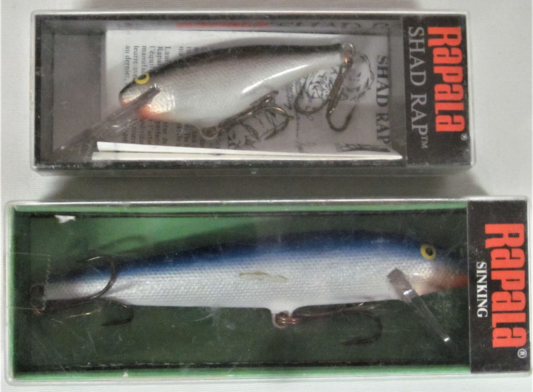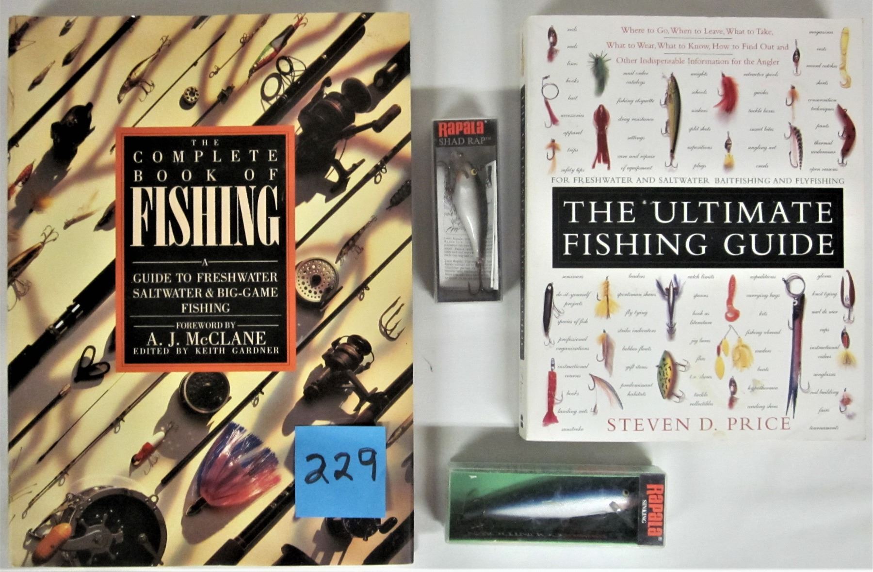 1985 hardcover Complete Book of Fishing& 1996 softcover ultimate fishing guide plus 2 new boxed Rapala fishing lures