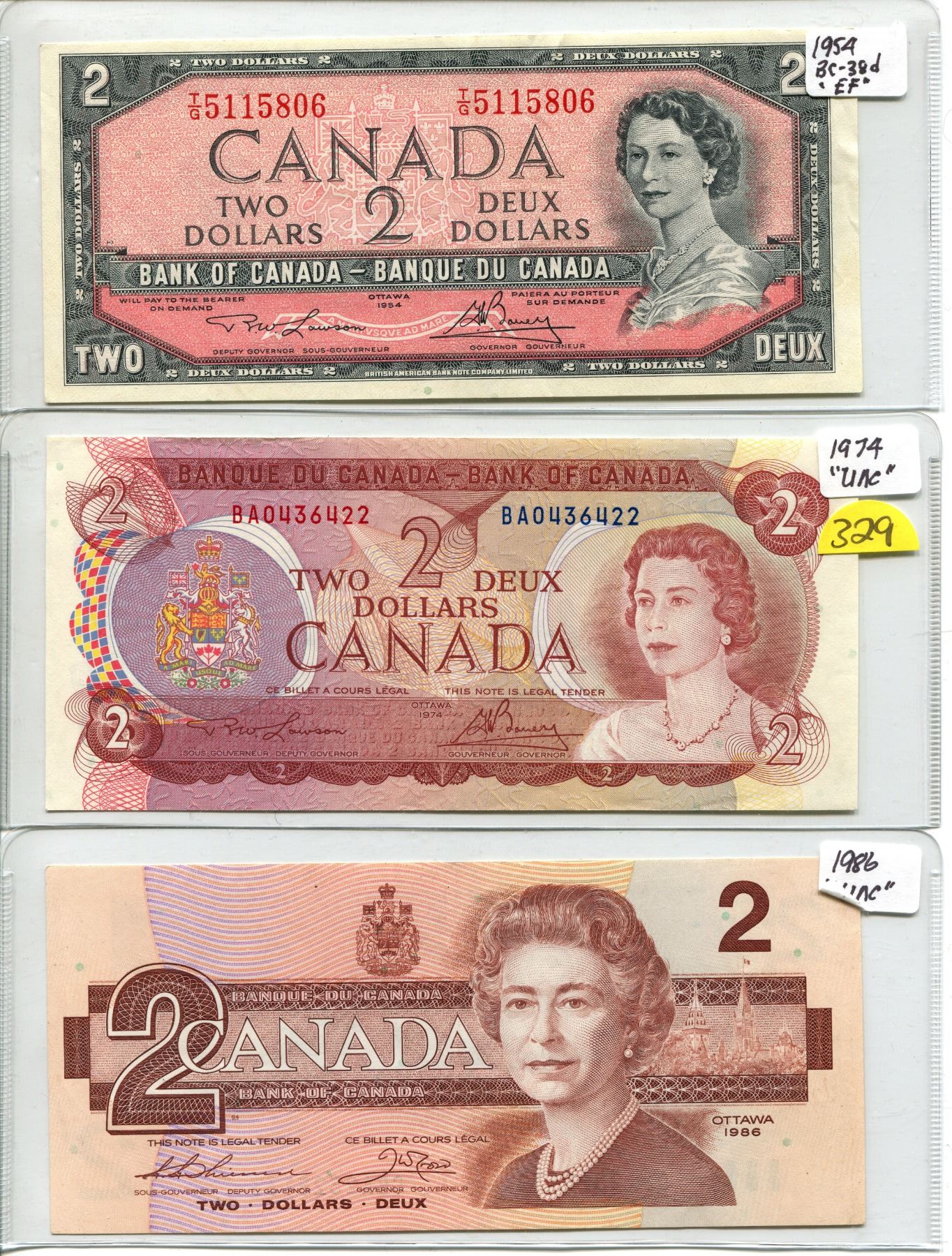 1986, 1974, 1954 TWO DOLLAR NOTES