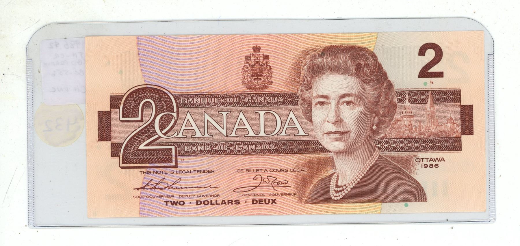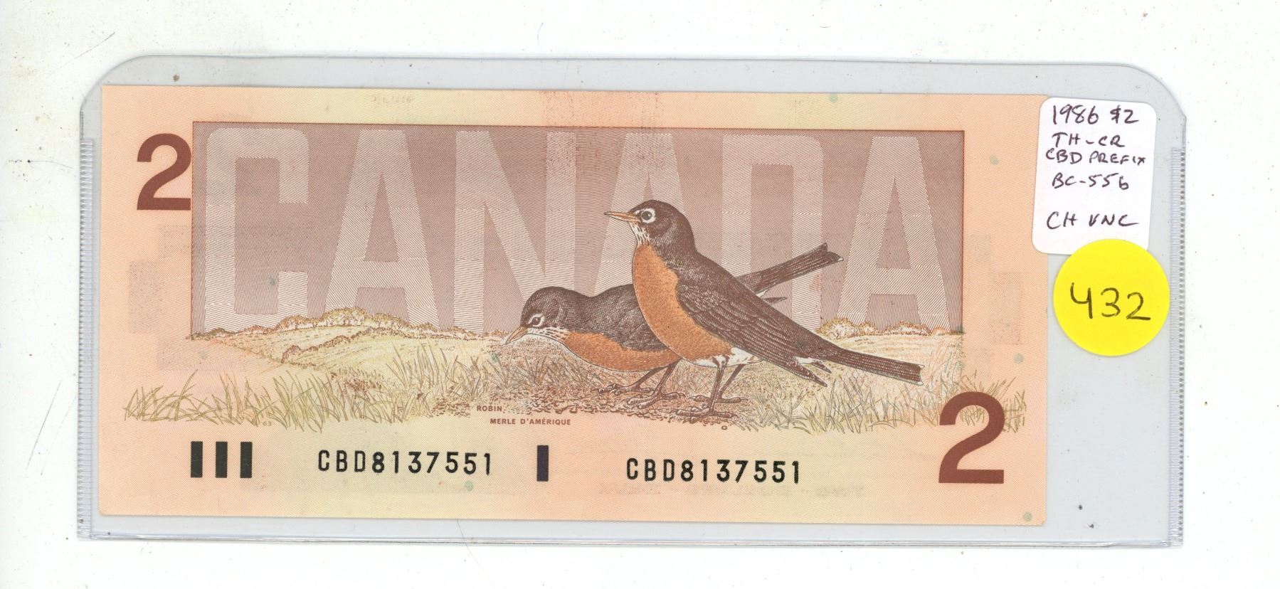 1986 $2. Thiessen-Crow signatures. CBD Prefix. BC-55b. Choice Uncirculated.