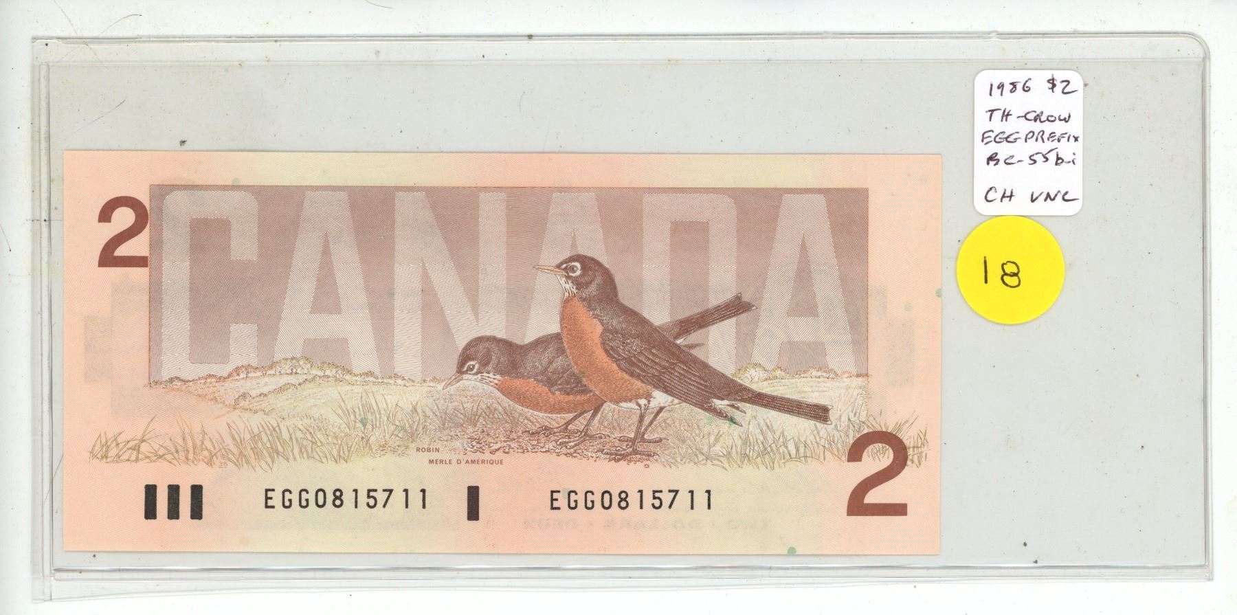 1986 $2. Thiessen-Crow signatures EGG Prefix. BC-55b-i. Choice Uncirculated.