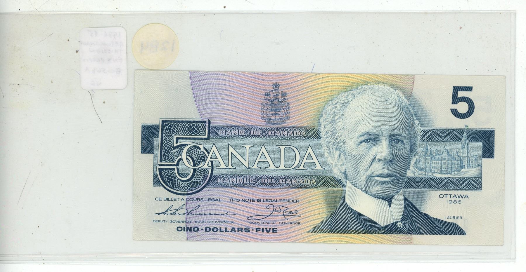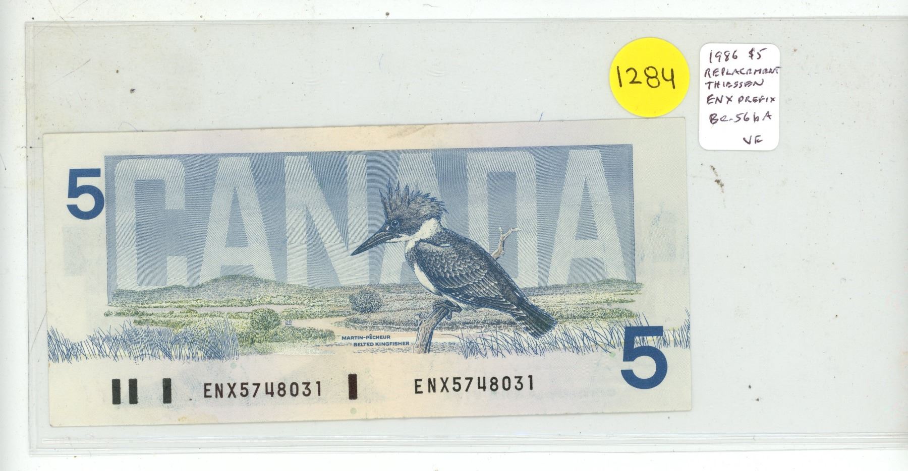 1986 $5 Replacement. Thiessen-Crow signatures. ENX Replacement Prefix. BC-56bA. VF.