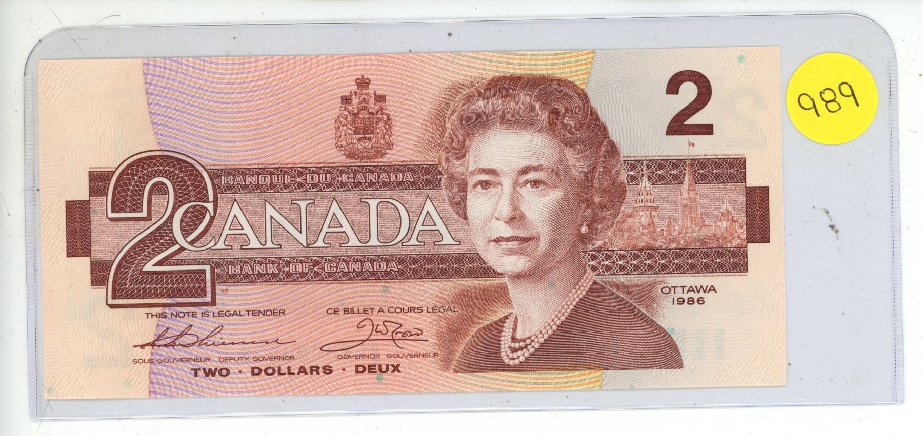 1986 Bank Of Canada Two Dollar Bank Note