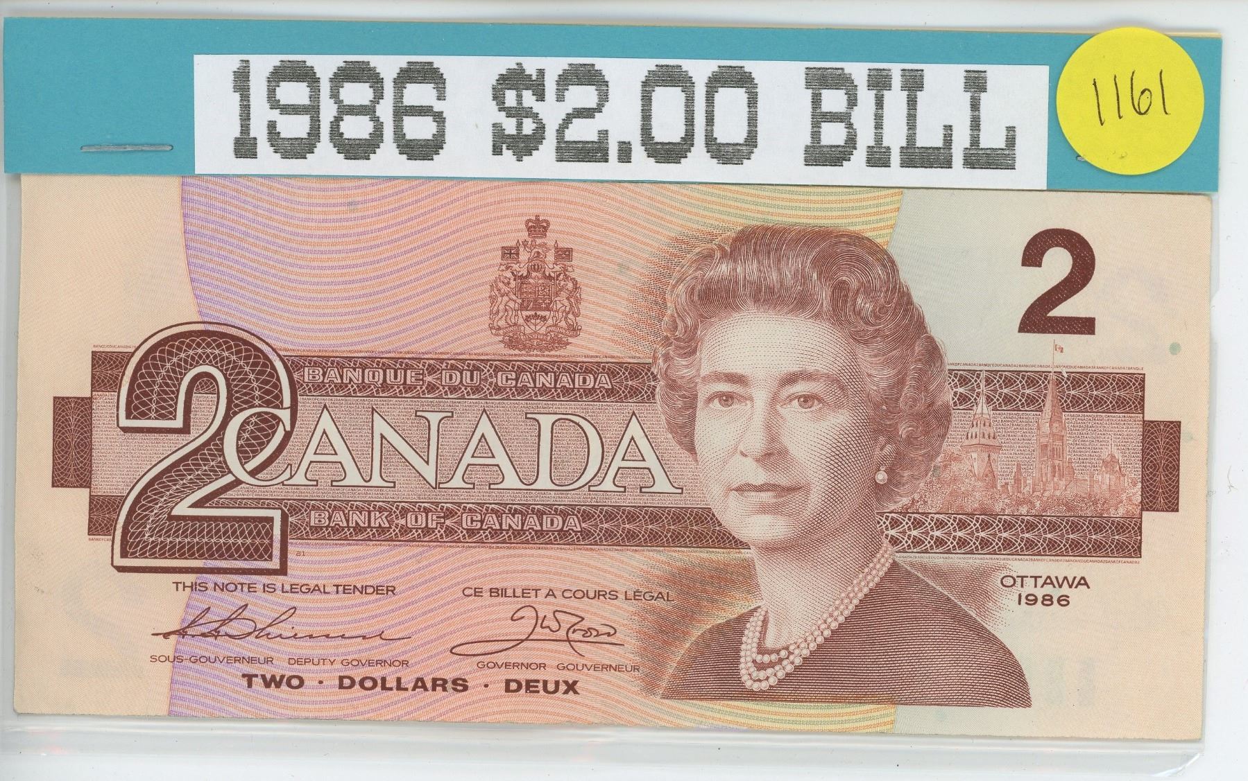 1986 CANADIAN TWO DOLLAR BANKNOTE (LAST YEAR OF ISSUE)