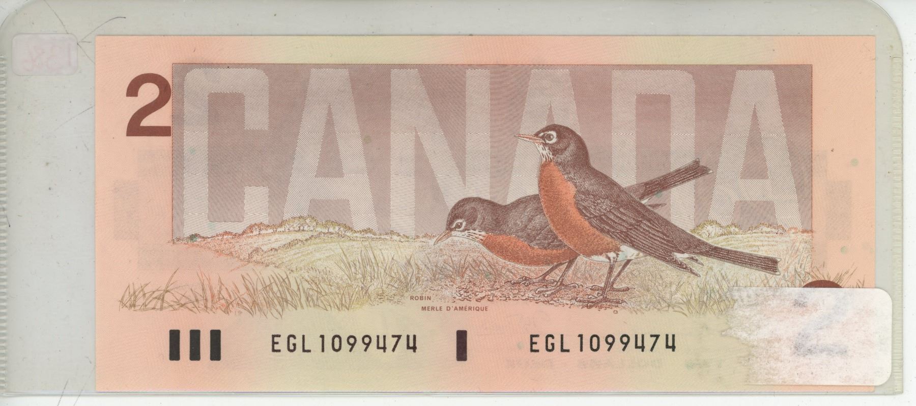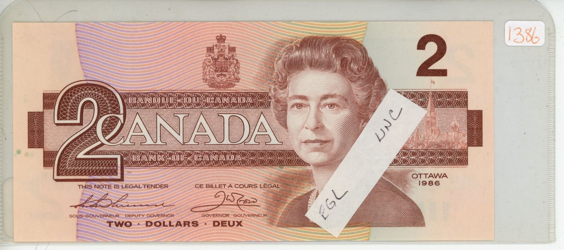 1986 Canadian 2 dollar bill - Thiessen/Crow - EGL 1099474