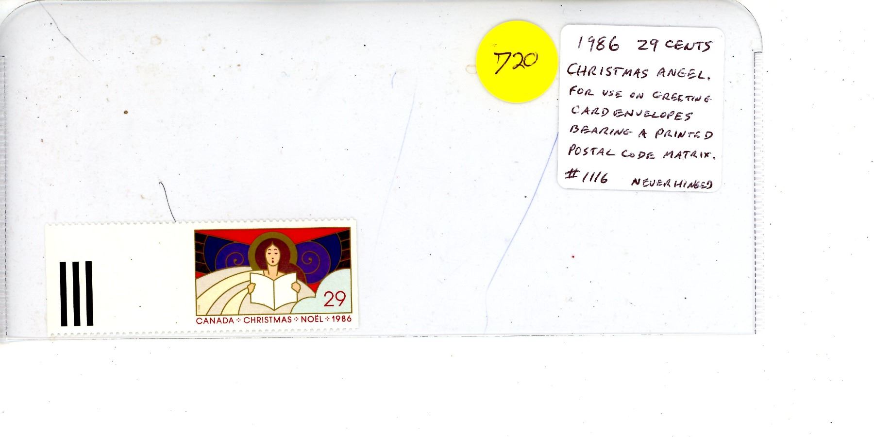 1986 Canadian elongated 29 cents Christmas Angel Stamp. For use on greeting card envelopes bearing a printed postal code matrix. #1116. Never Hinged.