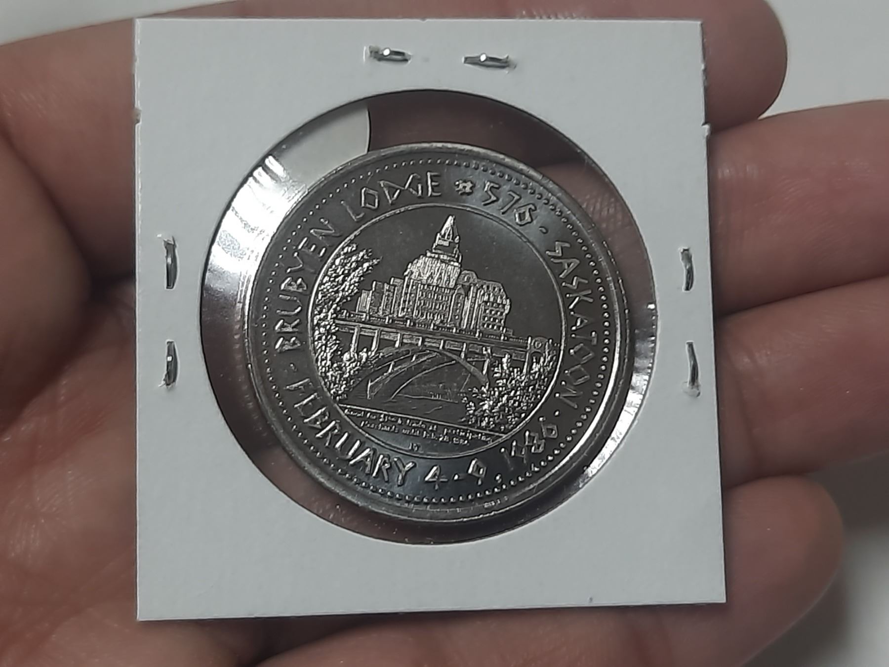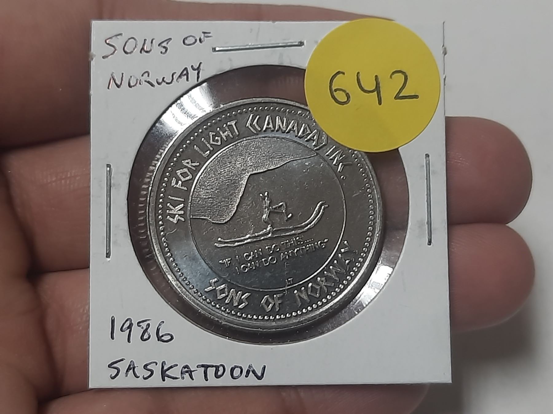 1986 Saskatoon Trade Dollar. Sons of Norway Ski Club. BU.