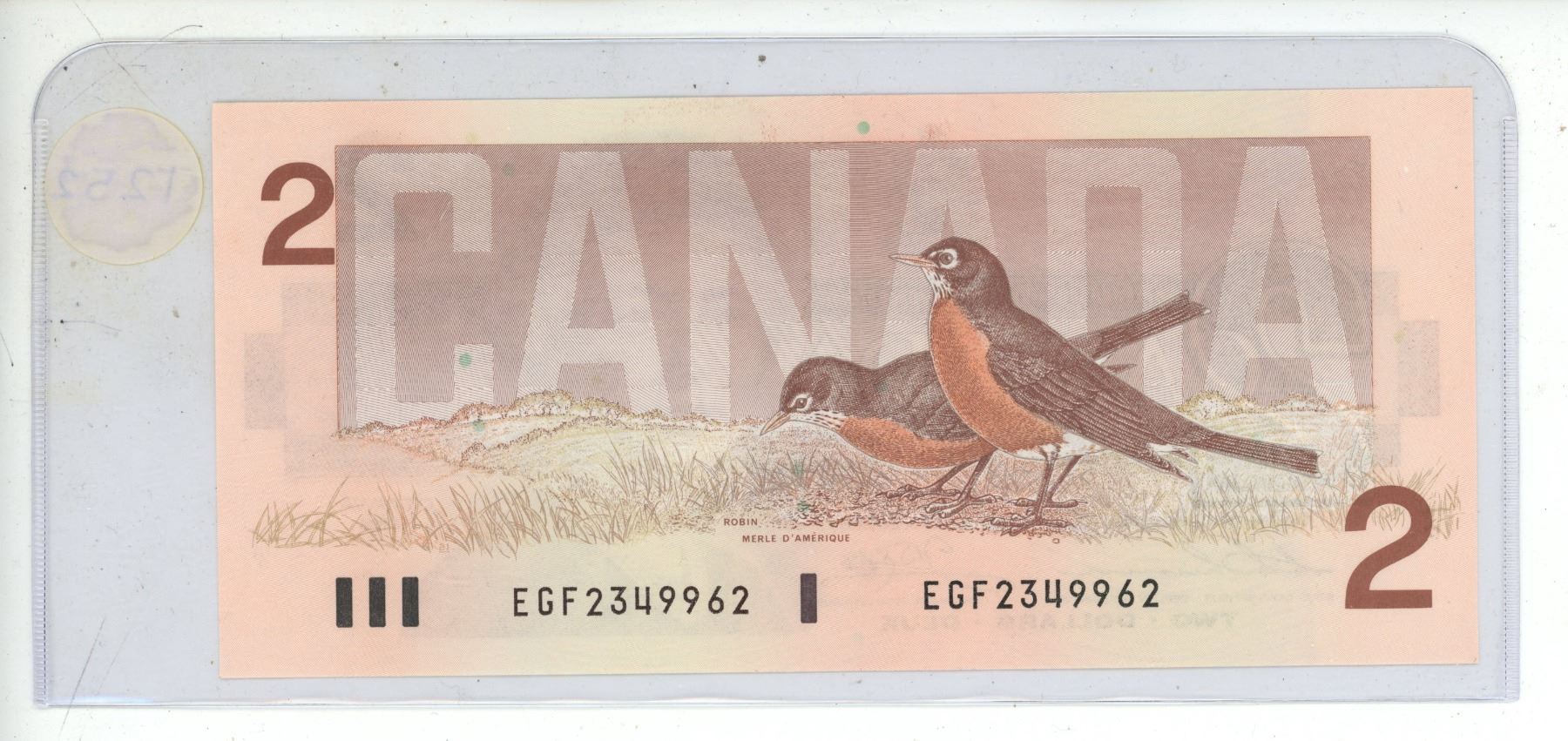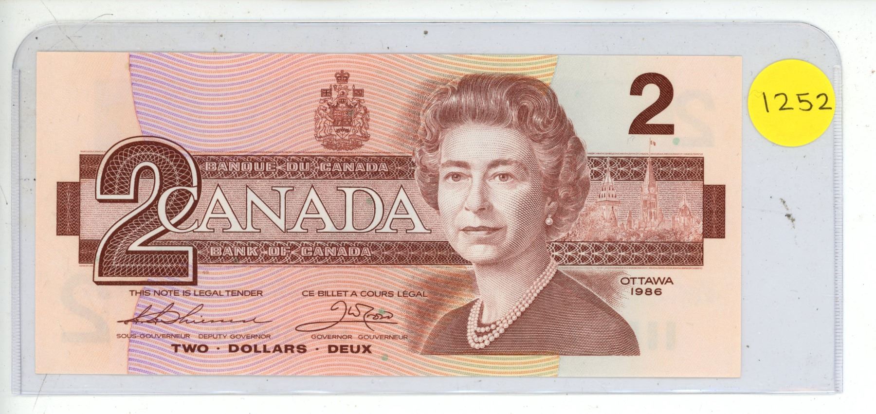 1986 UNC Bank Of Canada Two Dollar Bank Note