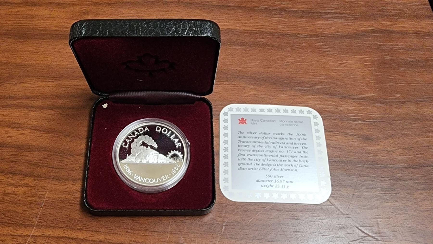 1986 Vancouver Centennial Silver Dollar. Popular train. Proof with Ultra Heavy Cameo. Bright White. Housed in its original case of issue.