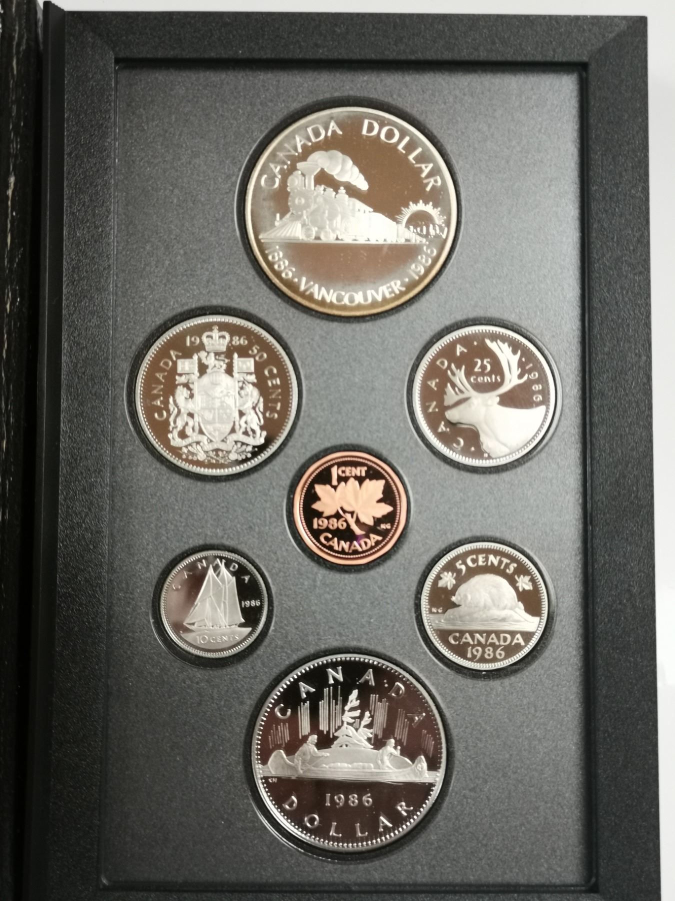 1986 "Vancouver Railway", Canadian silver dollar proof year set