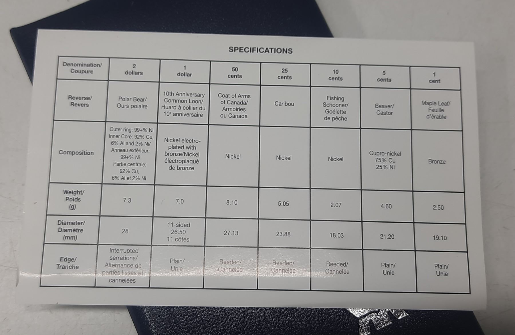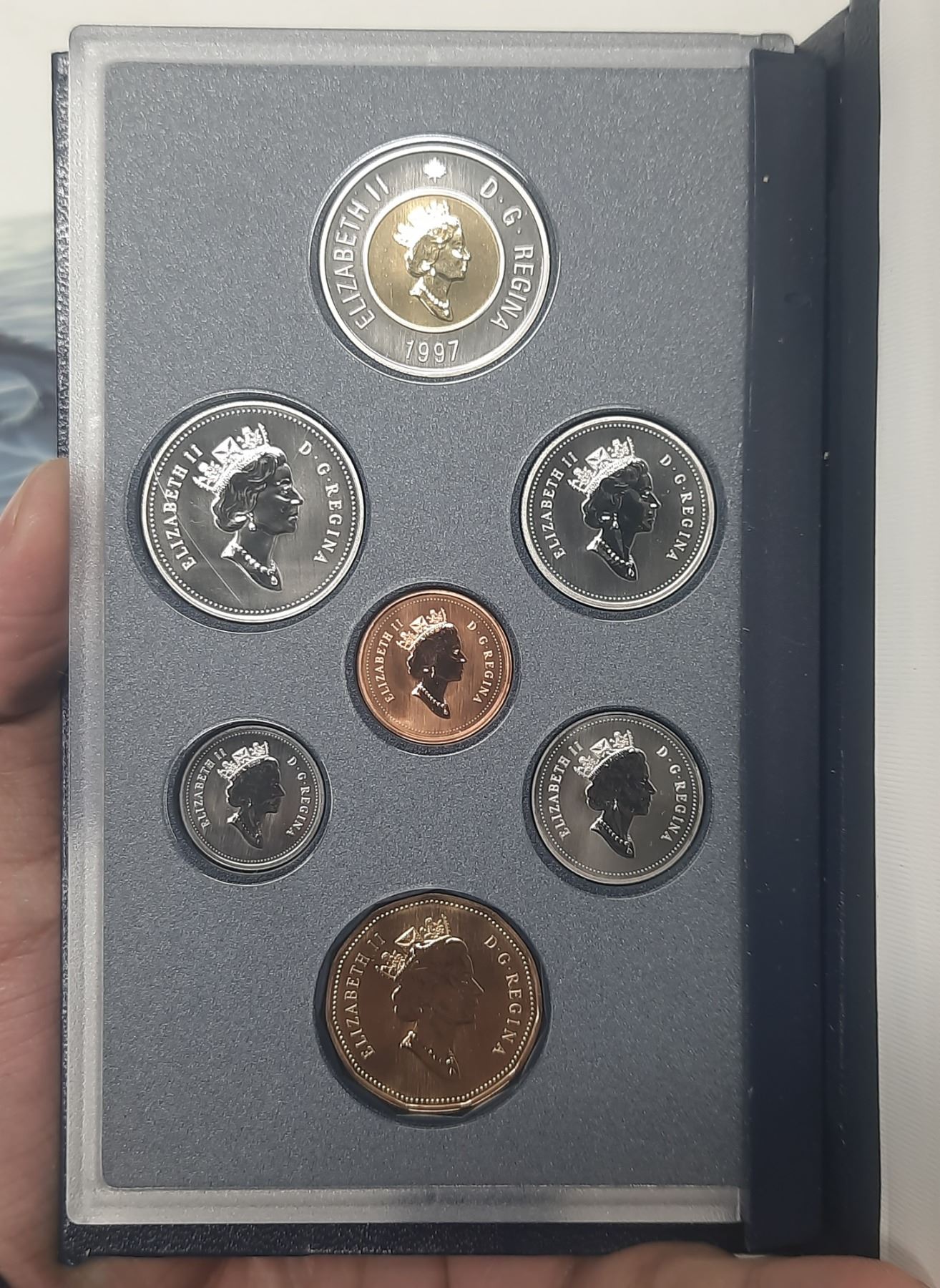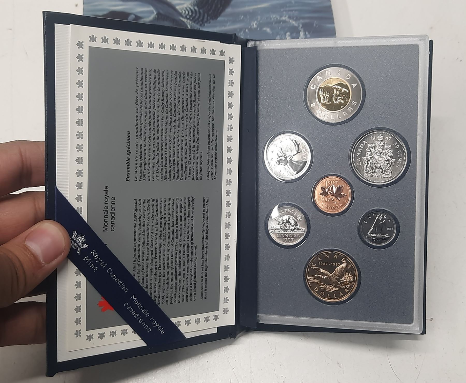 1987 – 1997 Specimen Set. The Loonie on the Dollar is Flying. This set is the only place where the flying Loonie was available. Housed in its original RCM case with COA.