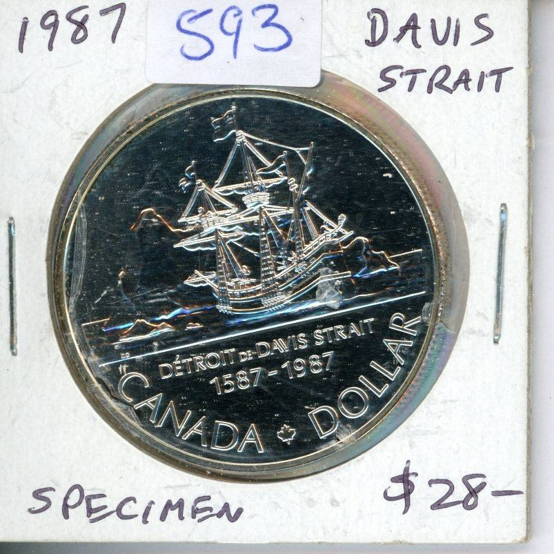 1987 Silver Dollar. Commemorates the 400th Anniversary of John Davis’s exploration for the North West Passage. Specimen.