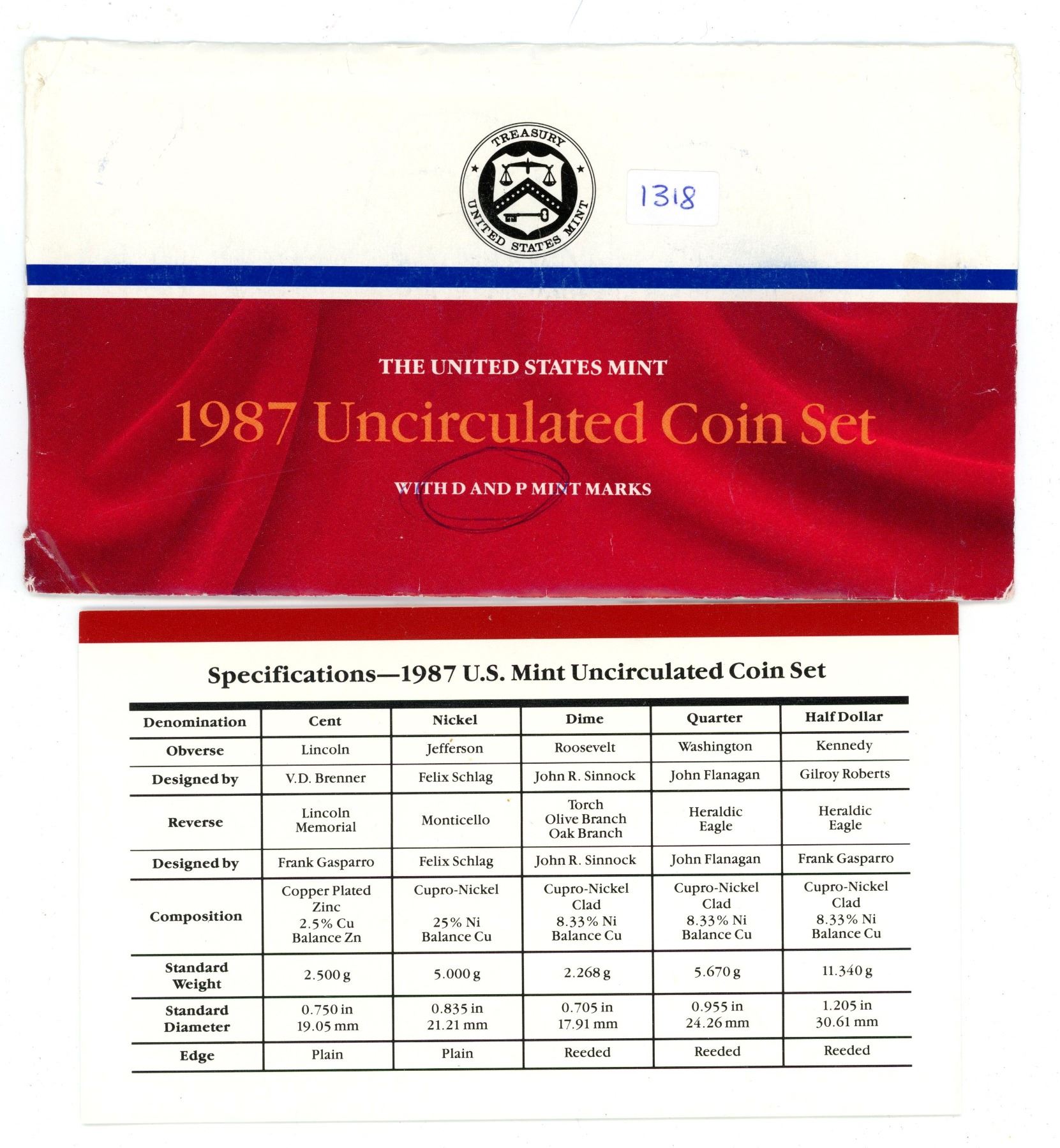 1987 US Mint Uncirculated Coin Set - see details in pics