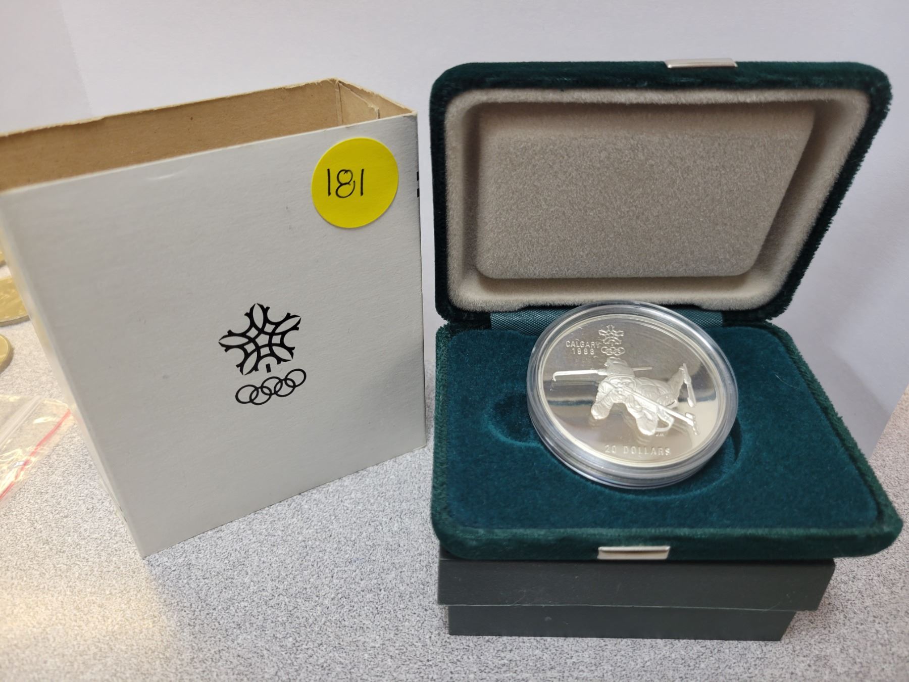 1988 Calgary Olympic Winter Games $20.00 coin - 1 troy ounce 92.5% silver Royal Canadian Mint ' Biathalon'