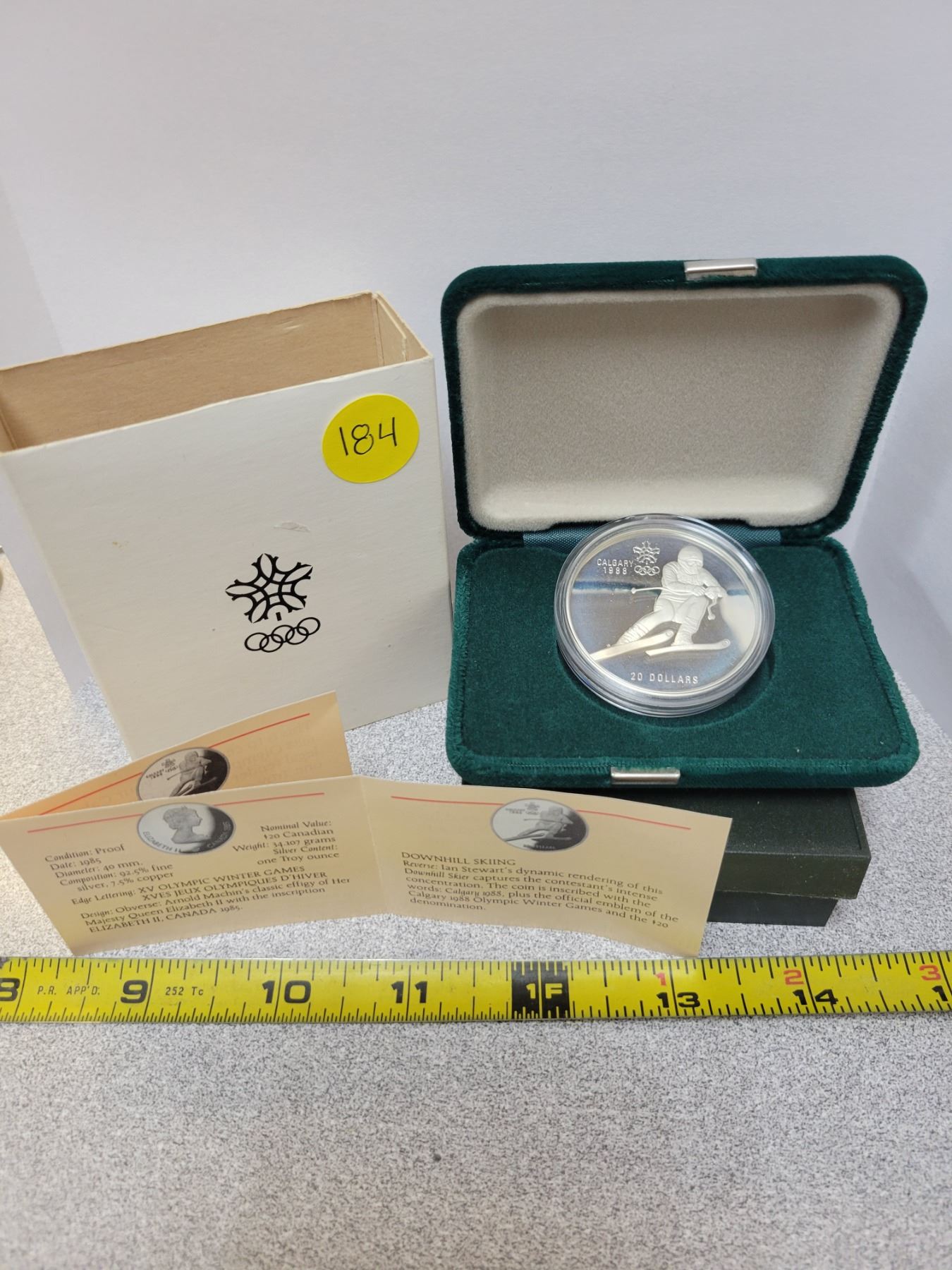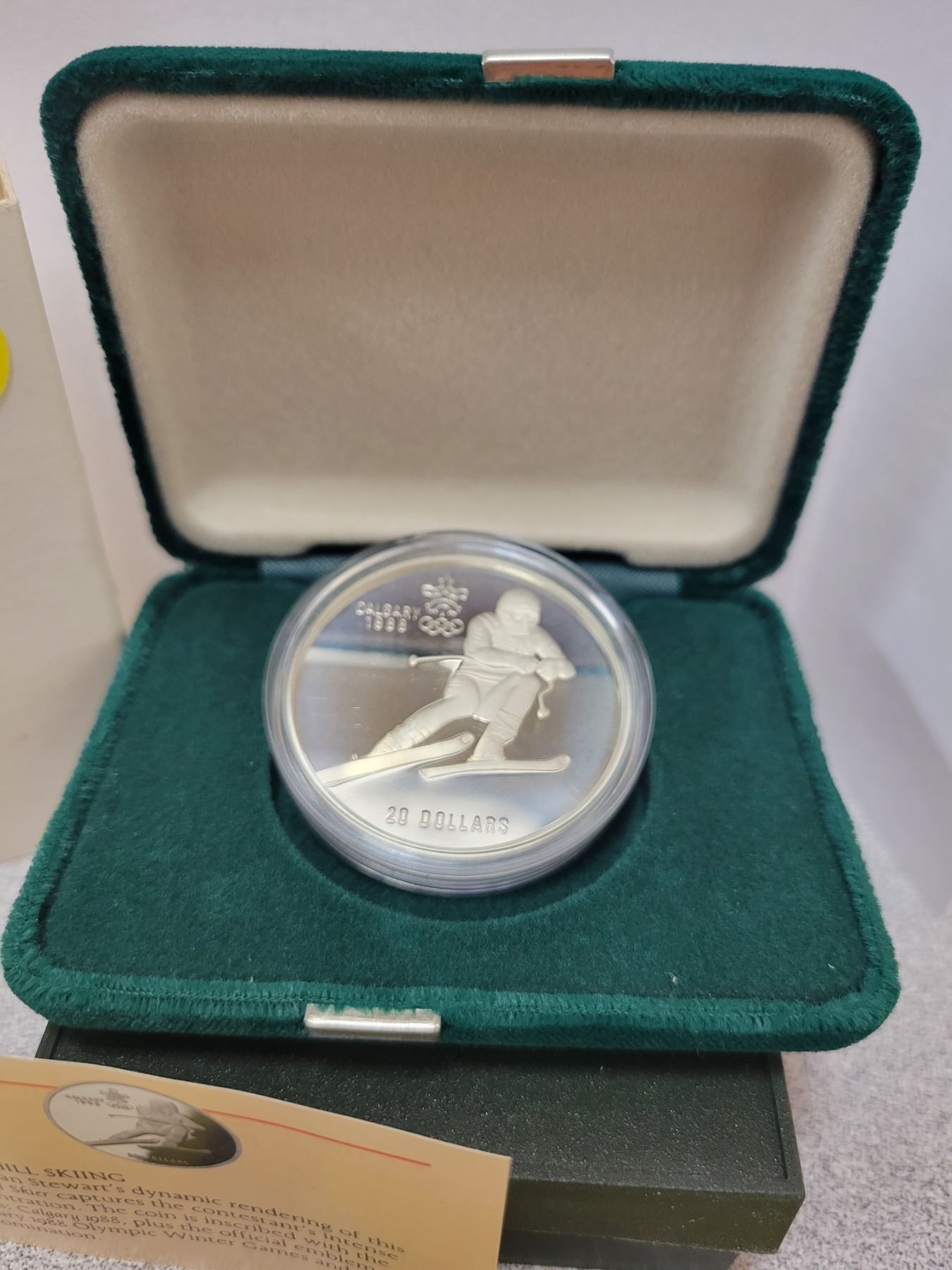 1988 Calgary Olympic Winter Games $20.00 coin - 1 troy ounce 92.5% silver Royal Canadian Mint 'Downhill skiing'