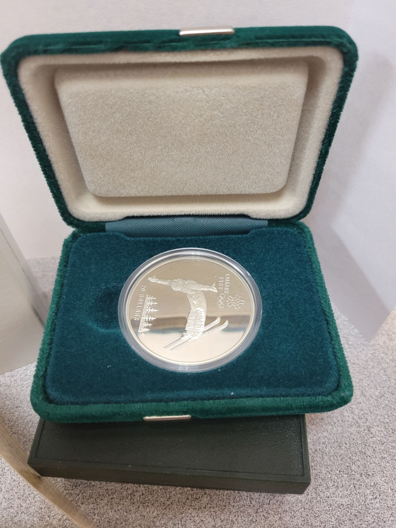 1988 Calgary Olympic Winter Games $20.00 coin - 1 troy ounce 92.5% silver Royal Canadian Mint 'Free-Style Skiing'