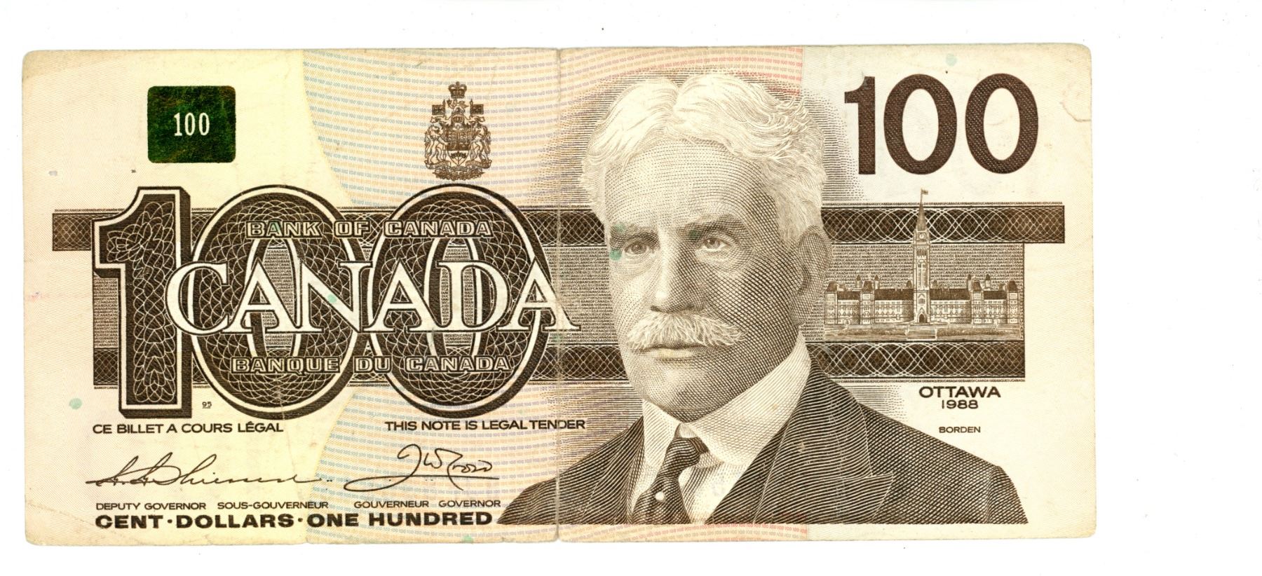 1988 Canada 100 dollar bill