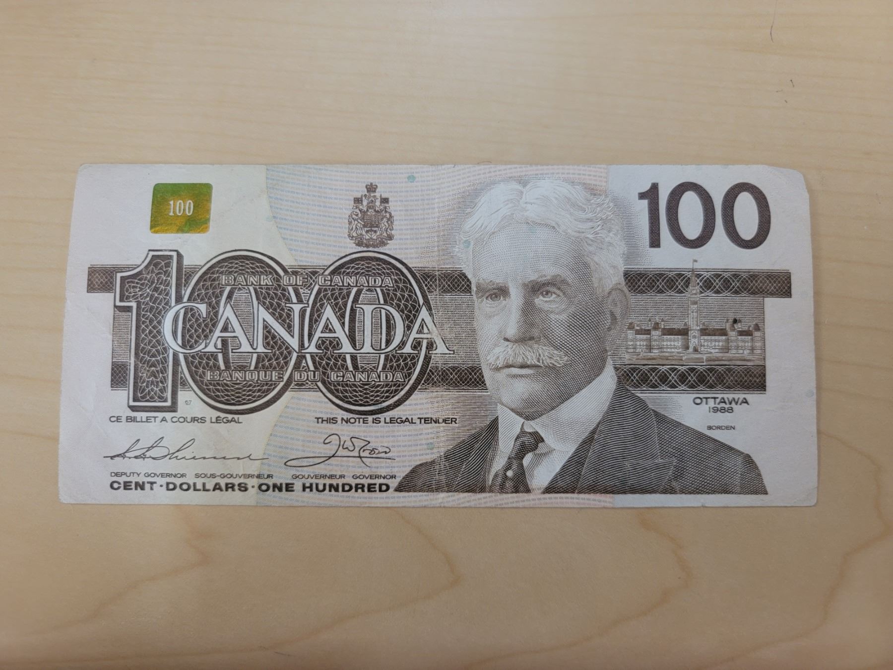 1988 Canada 100 dollar bill