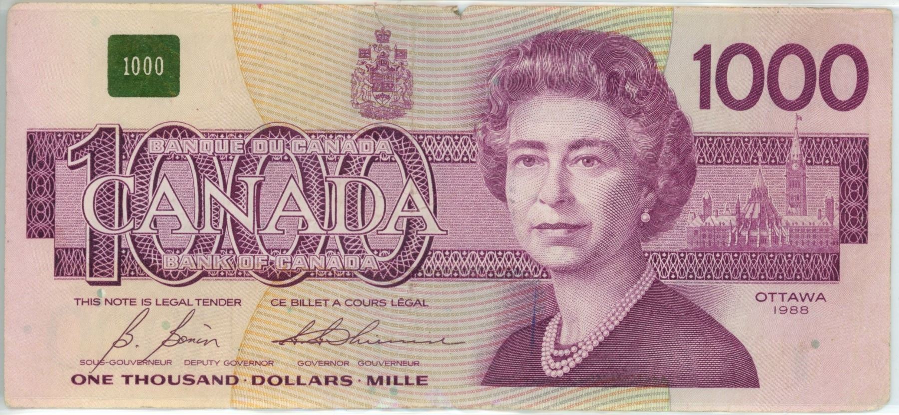 1988 Canada $1000.00 ONE THOUSAND dollar bill - bird bill series