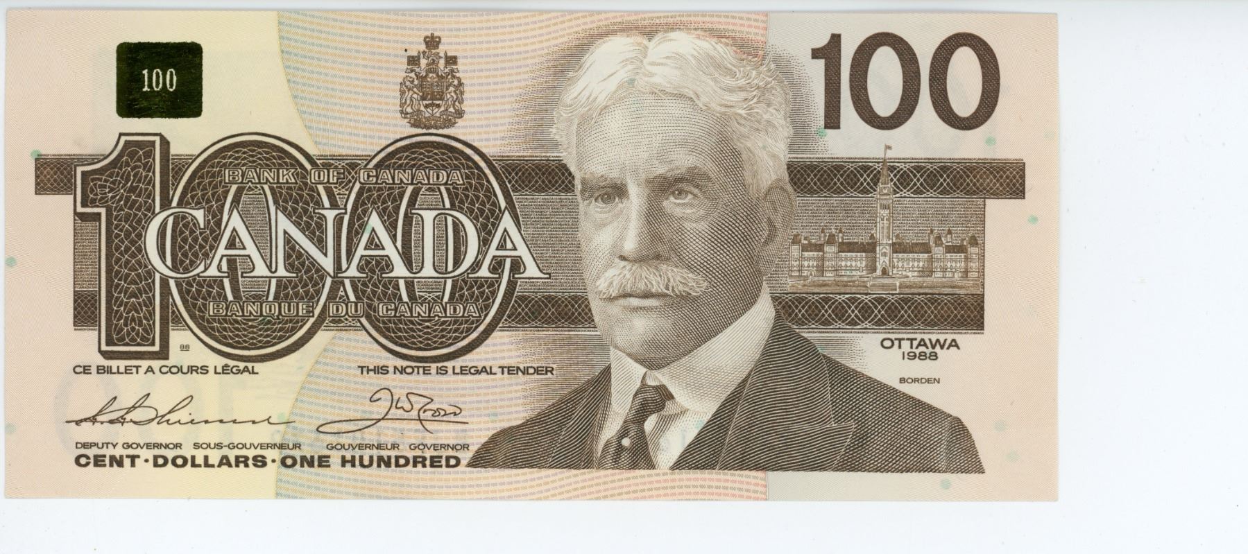 1988 Canadian 100 dollar bill - BJF5141679 - unc