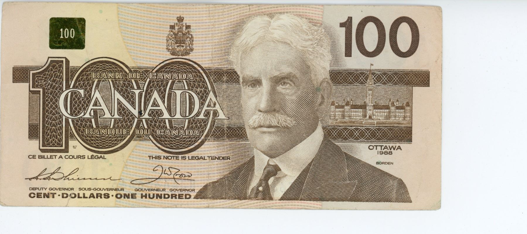 1988 Canadian 100 dollar bill - Thiessen/Crow - BJA6336666